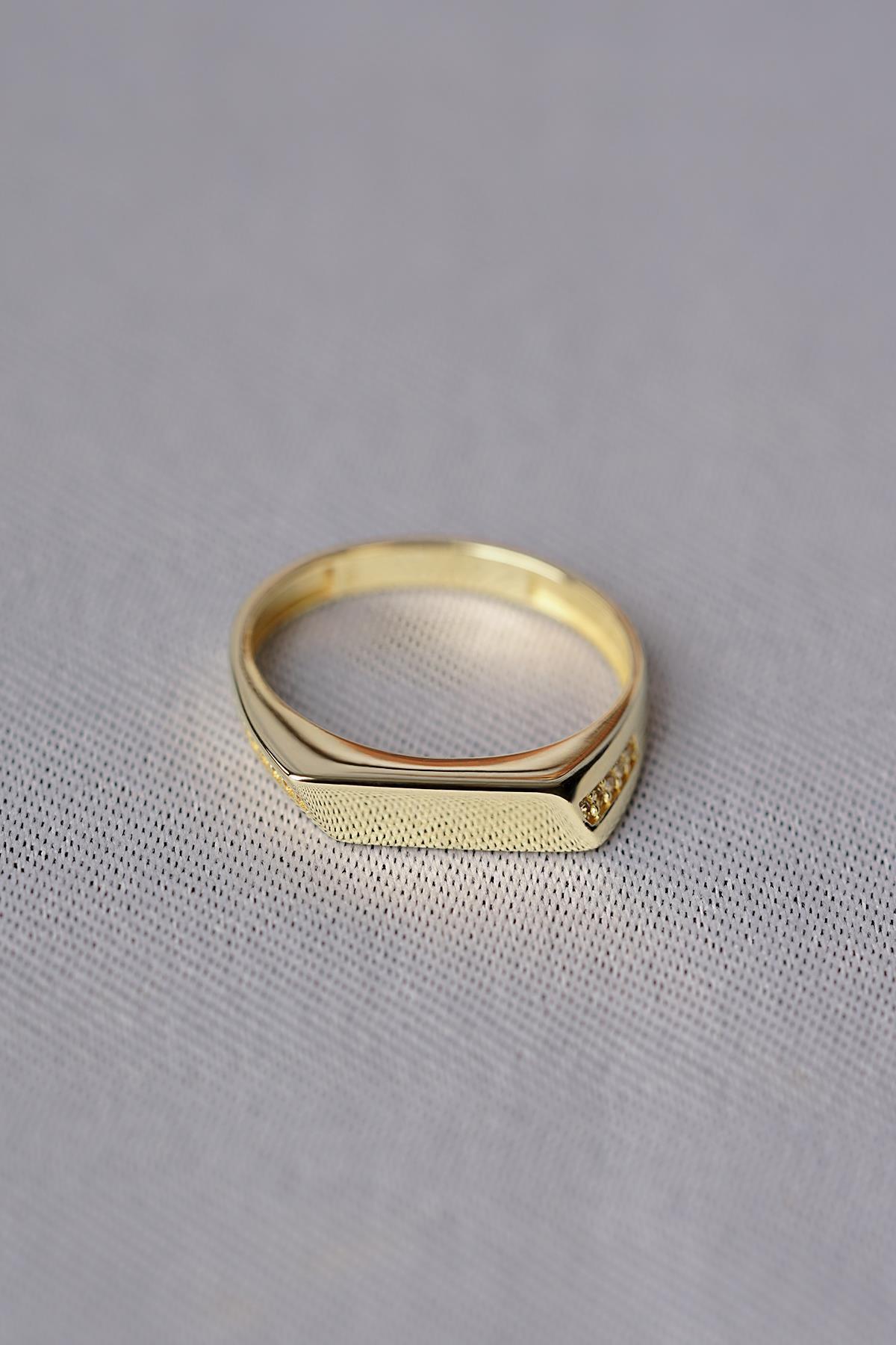 14 Ayar Altın Taşlı Oval Dikdörtgen Yüzük