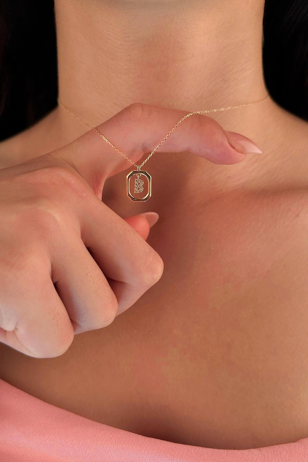 14 Ayar Altın B Harfli Kolye
