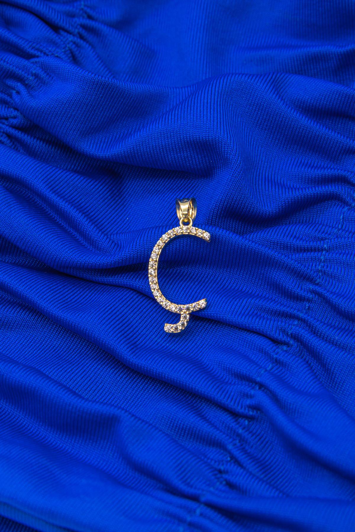 14 Ayar Altın Taşlı Ç Harf Kolye Ucu