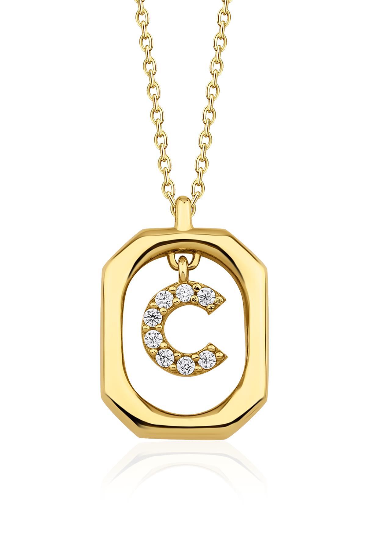 14 Ayar Altın Taşlı C Harfli Kolye