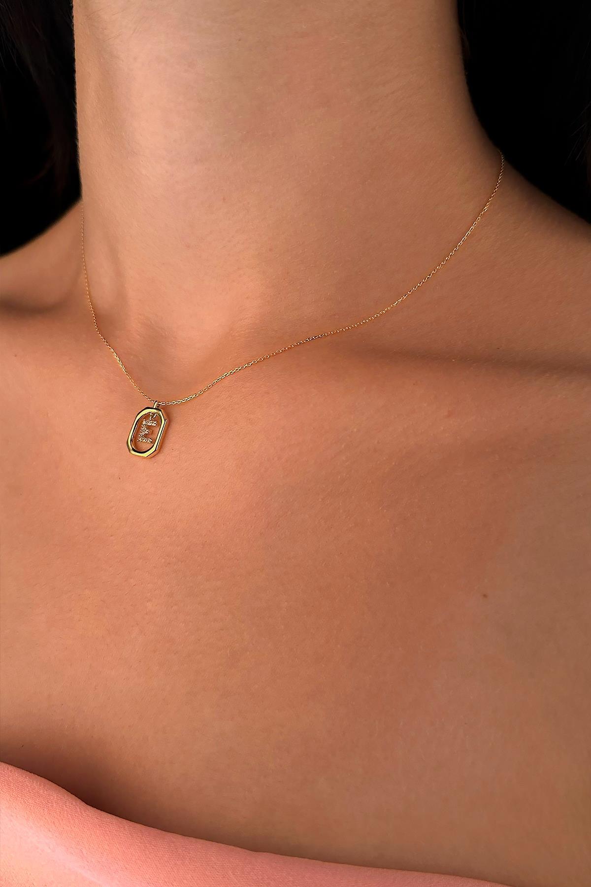 14 Ayar Altın Taşlı Ş Harfli Kolye