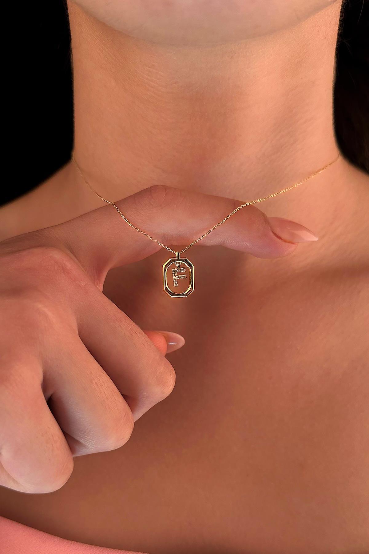 14 Ayar Altın Taşlı Ş Harfli Kolye