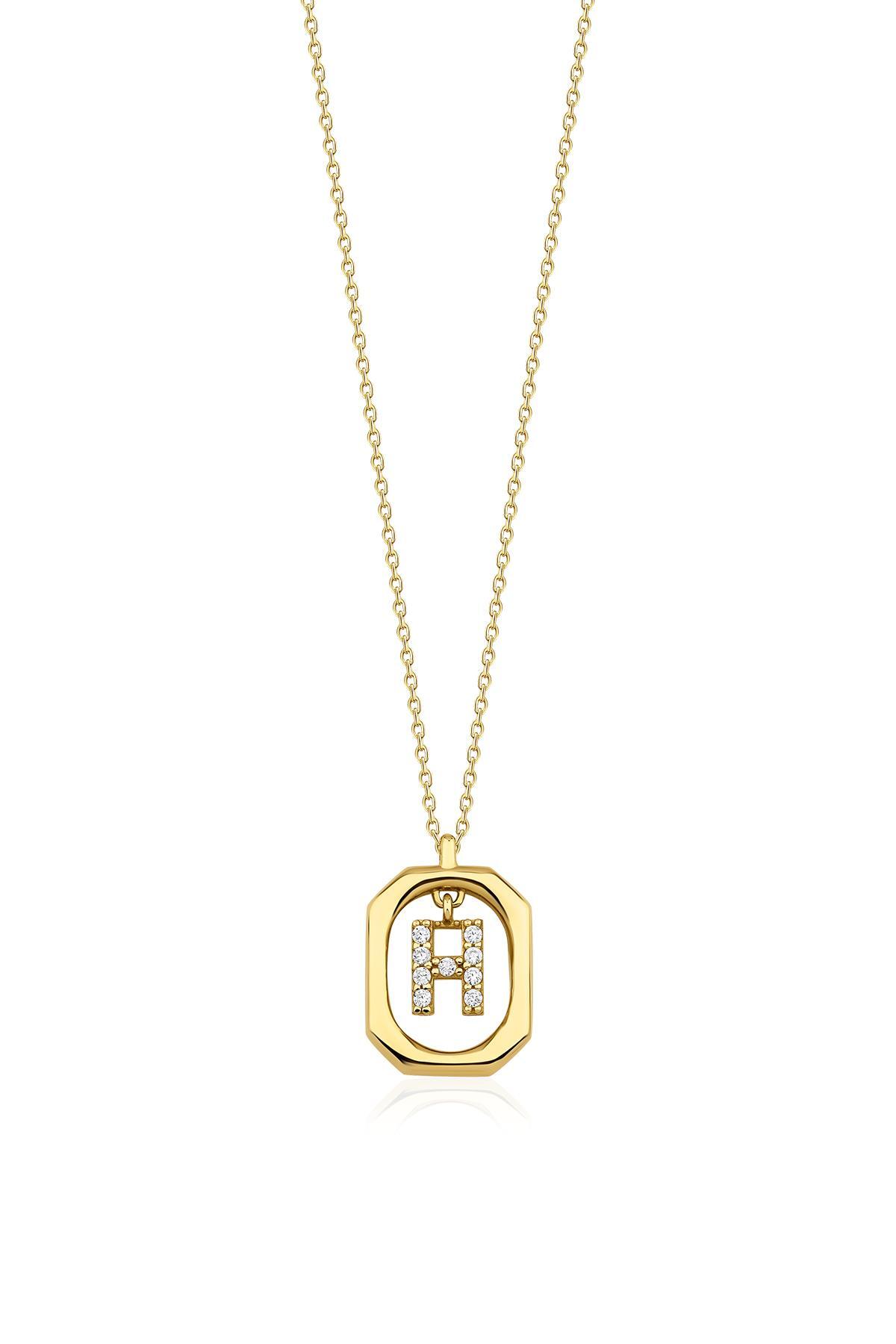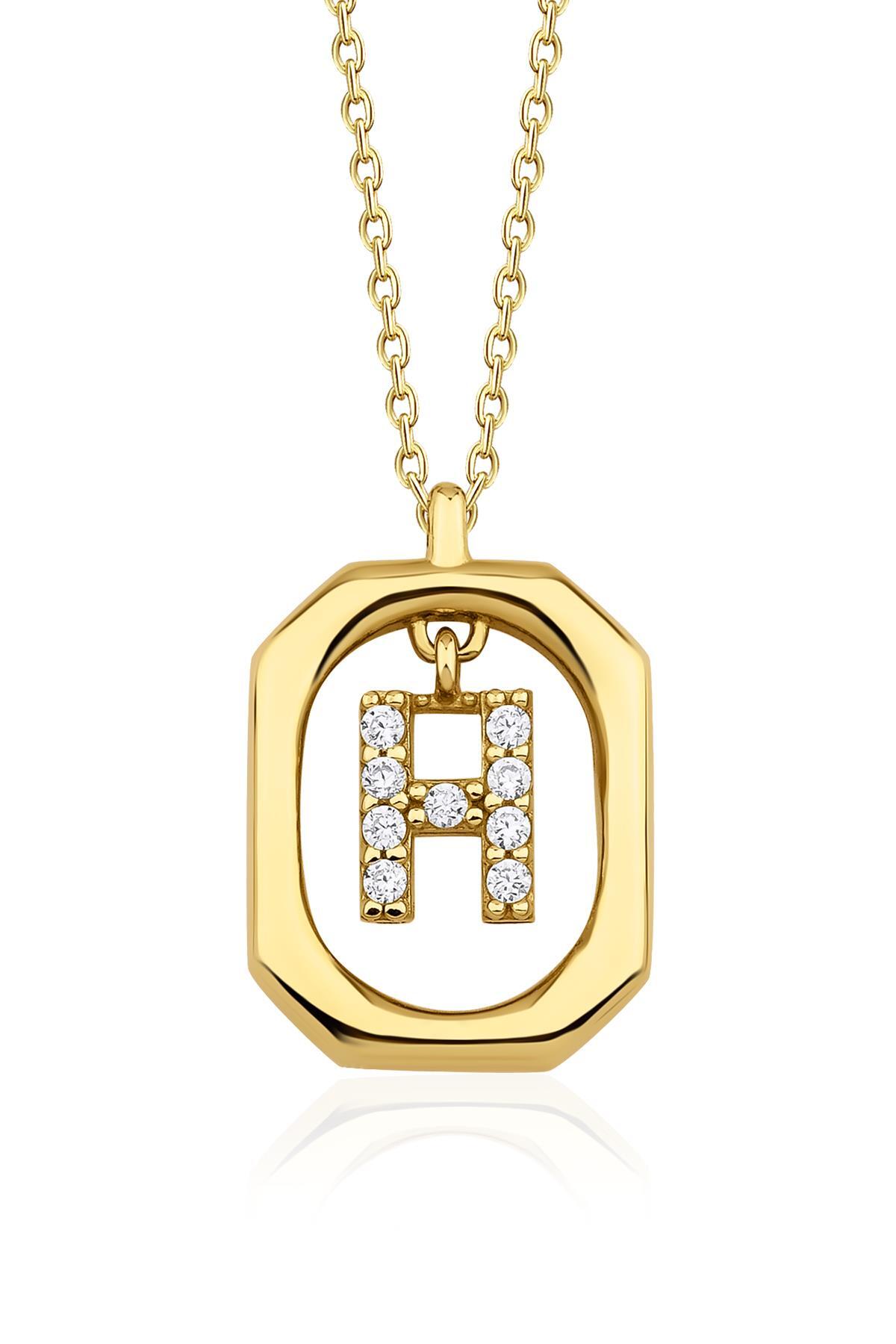 14 Ayar Altın Taşlı H Harfli Kolye