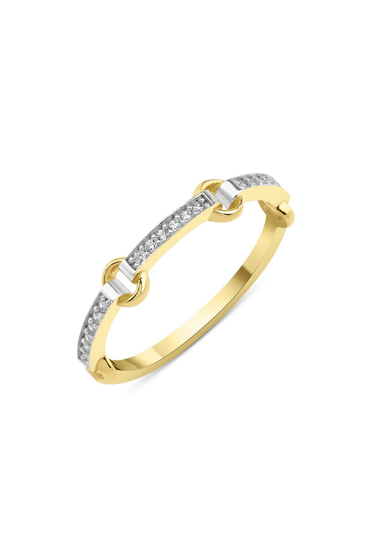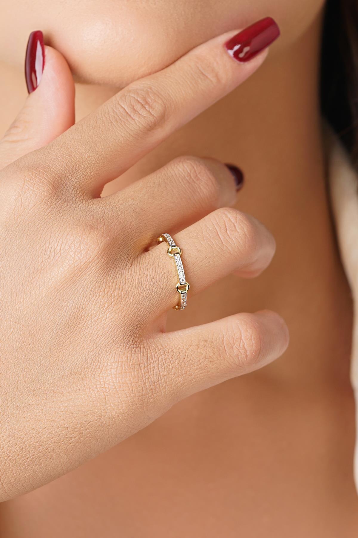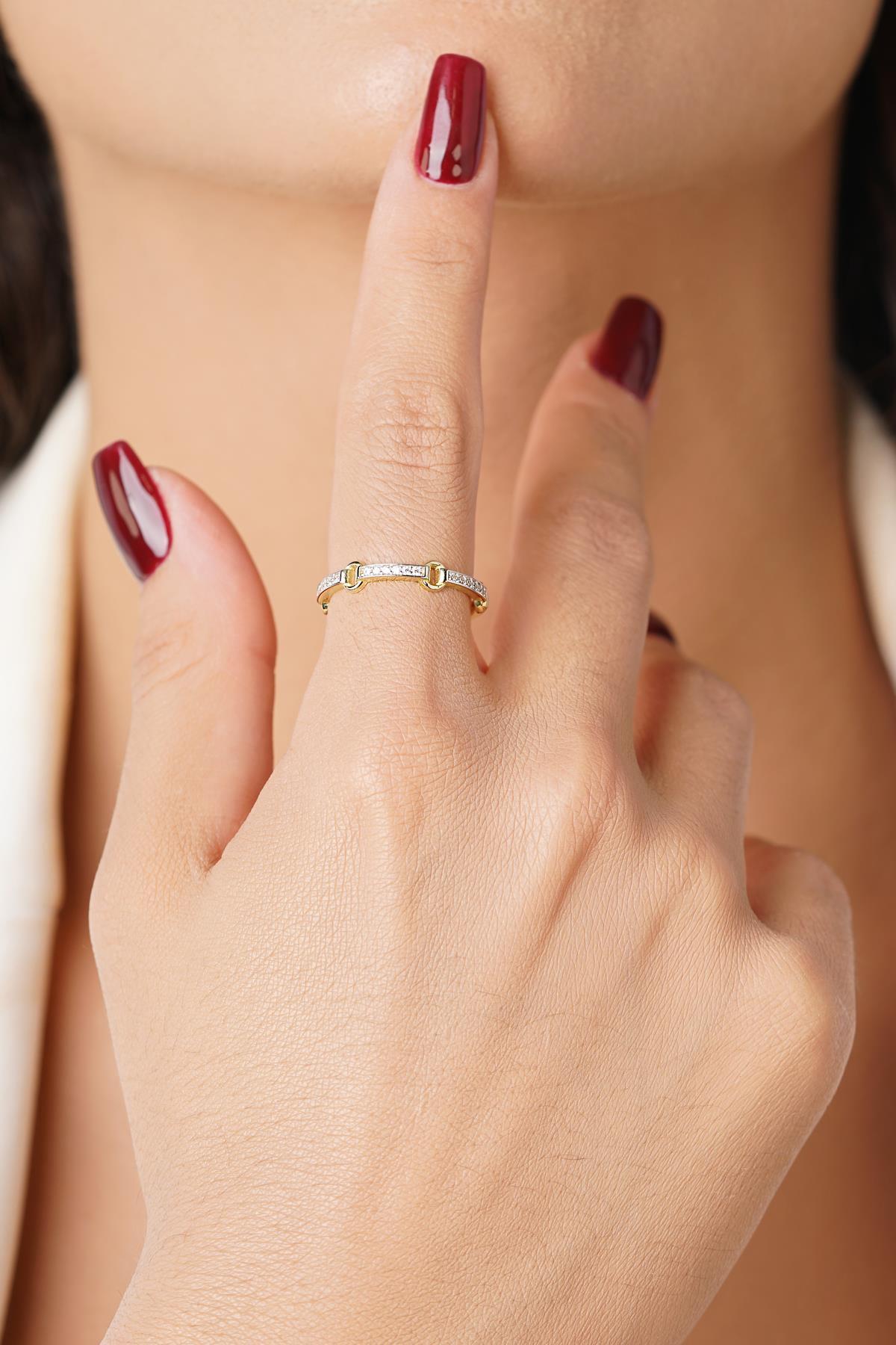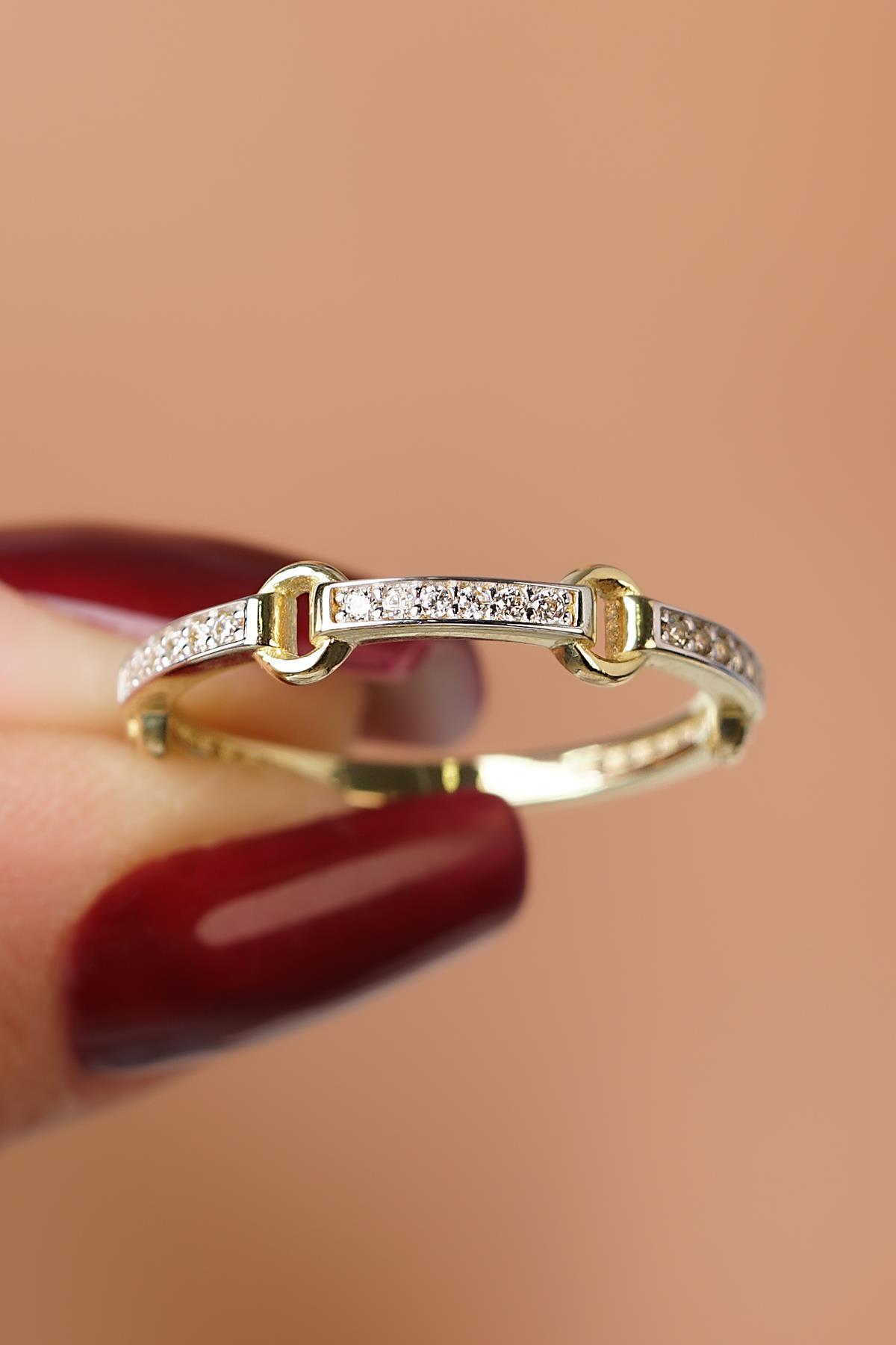 14 Ayar Altın Taşlı Halka Atlamalı Yüzük