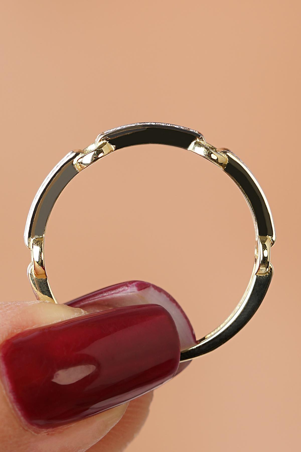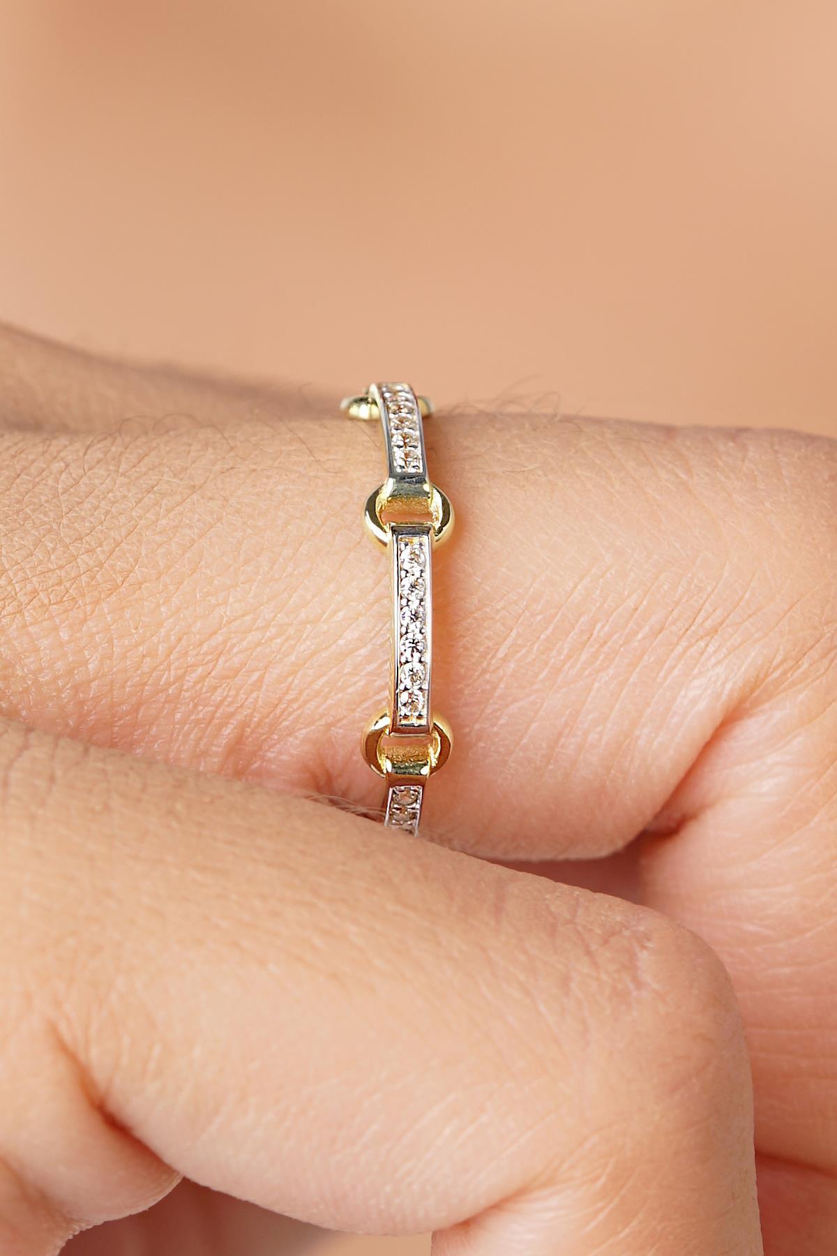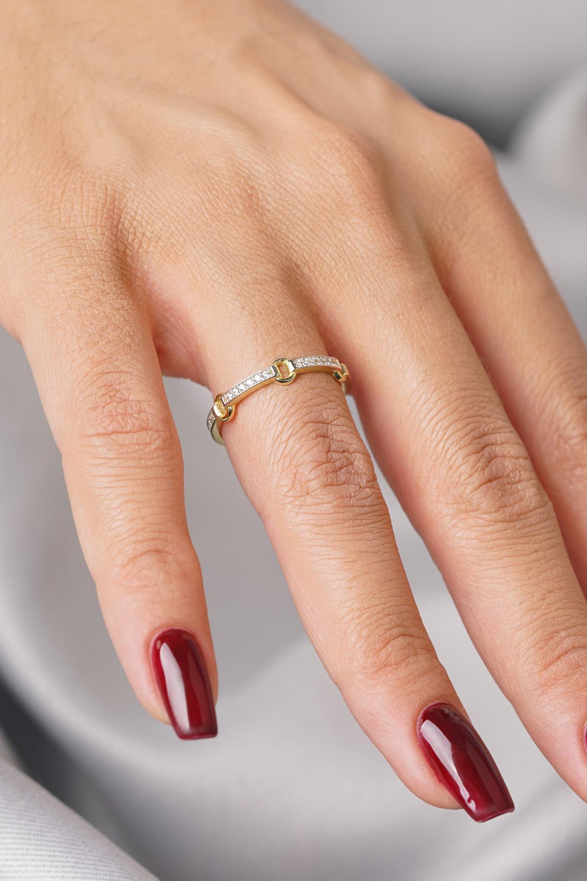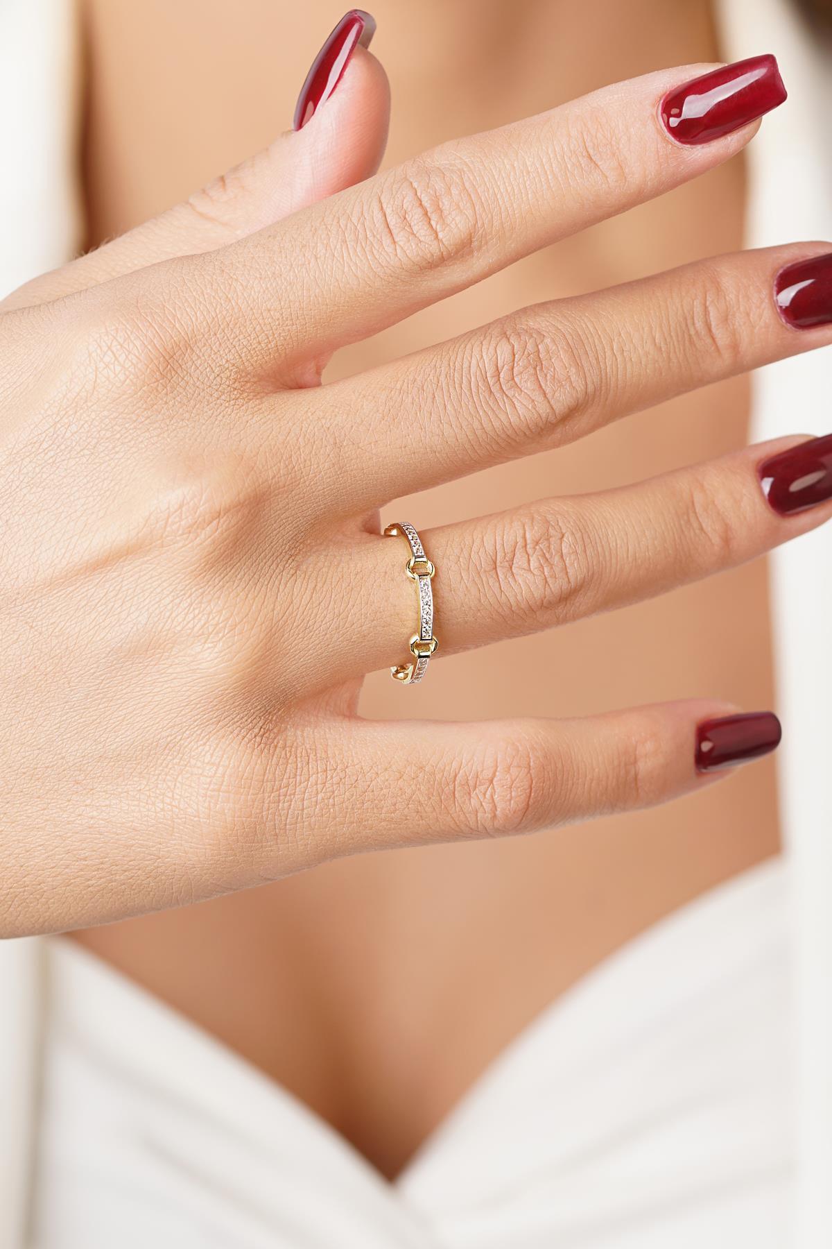 14 Ayar Altın Taşlı Halka Atlamalı Yüzük
