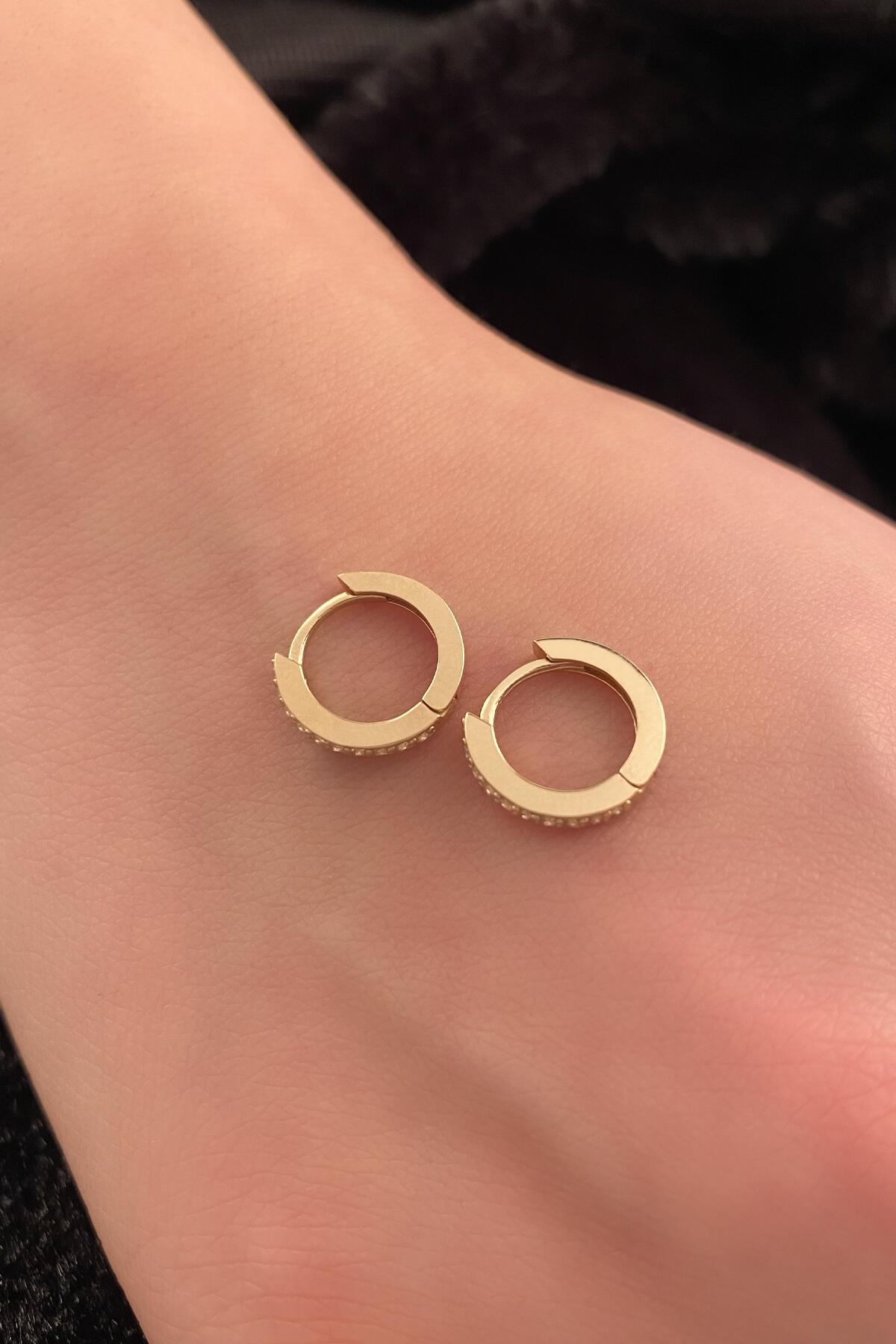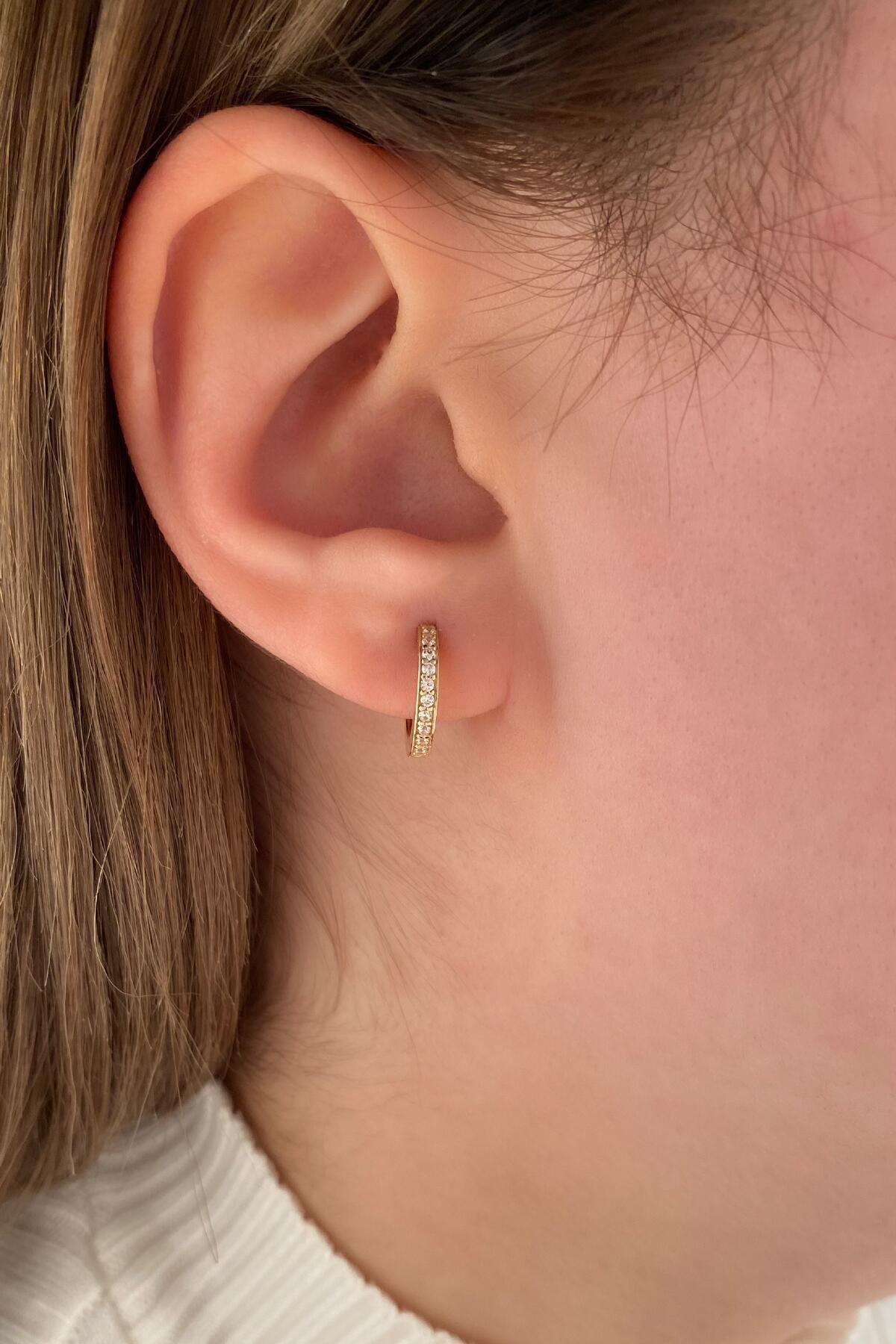 14 Ayar Altın Taşlı Halka Küpe 3