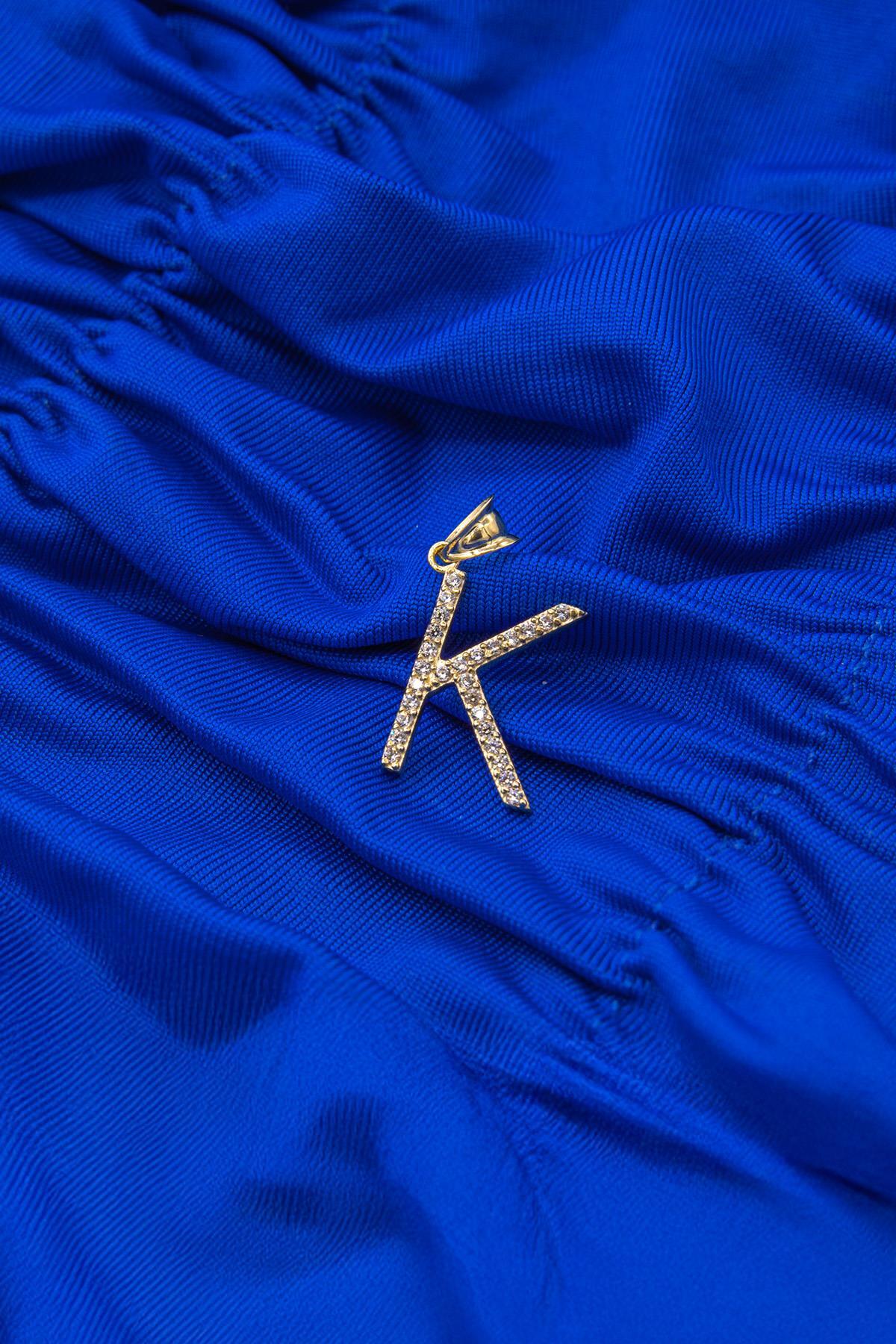 14 Ayar Altın Taşlı K Harf Kolye Ucu