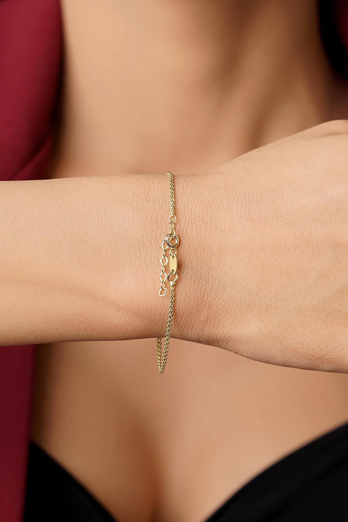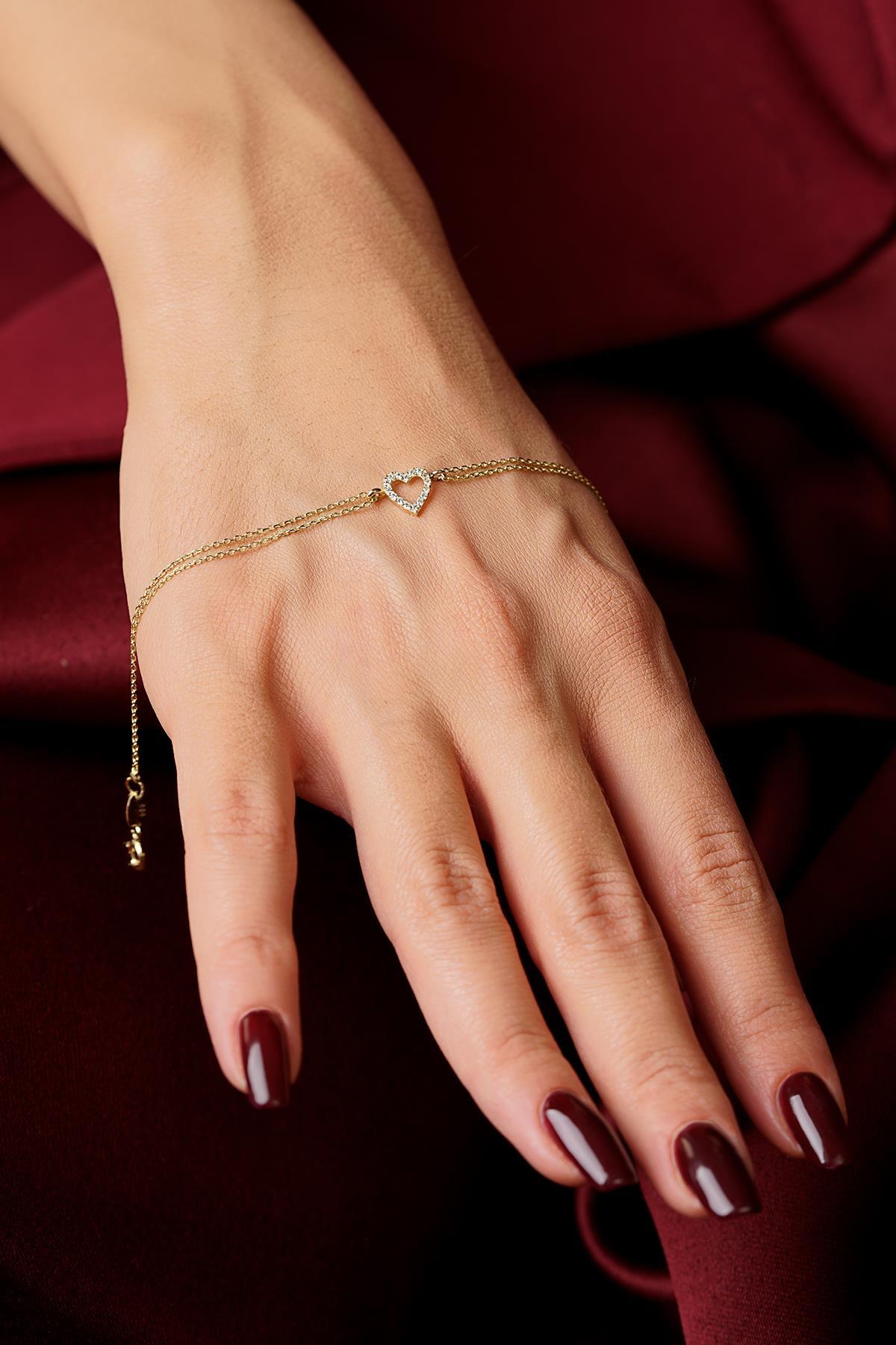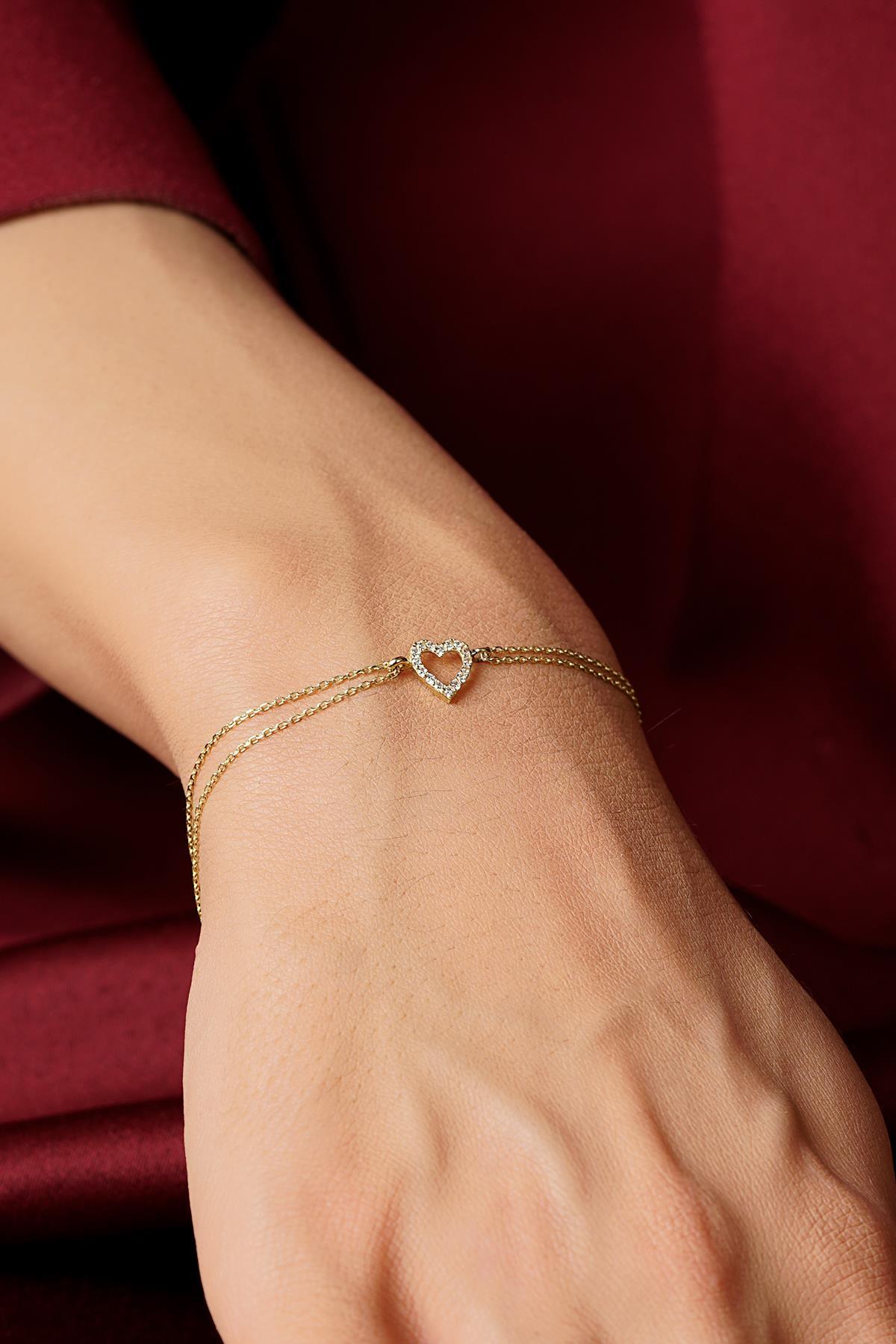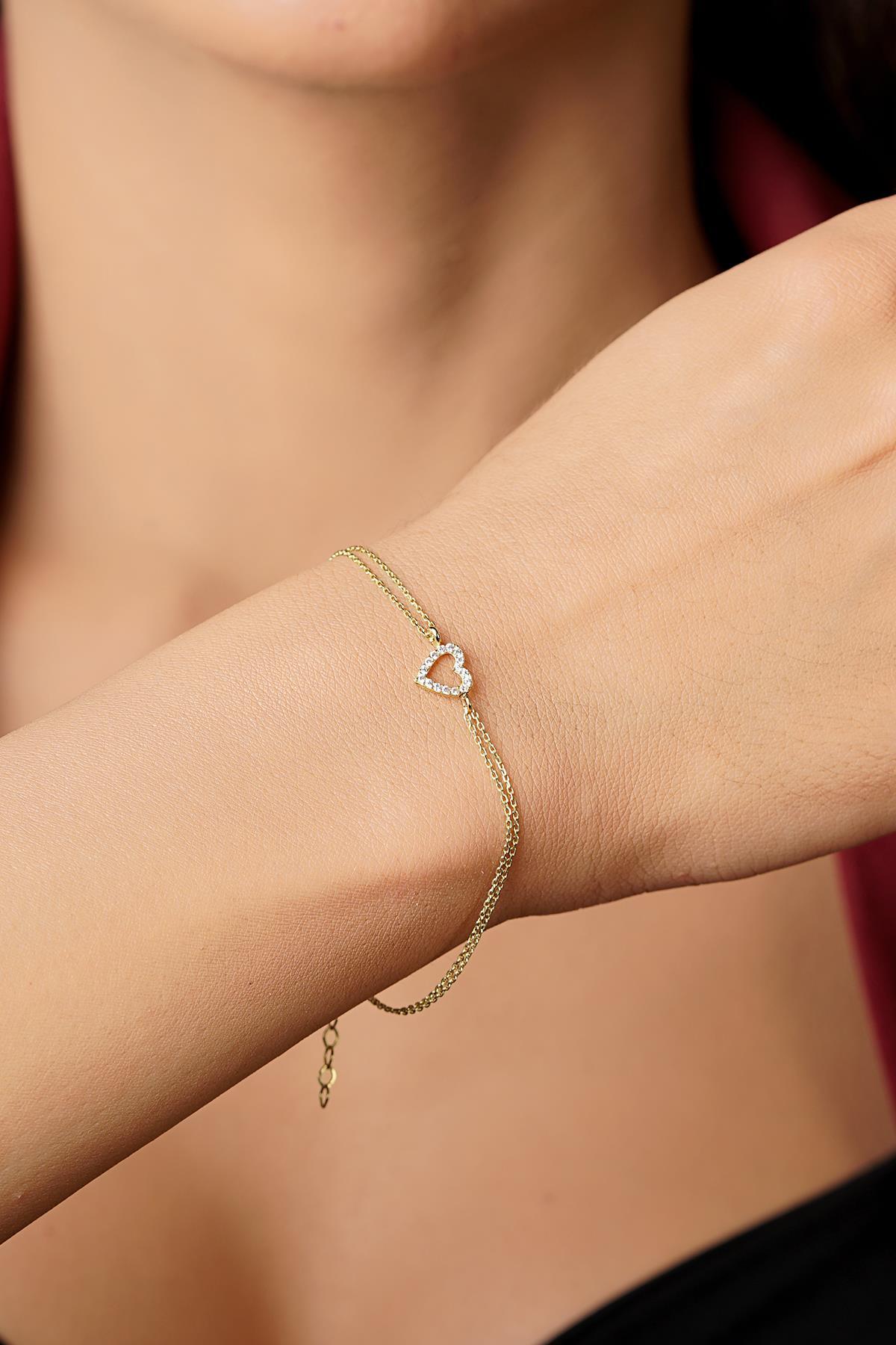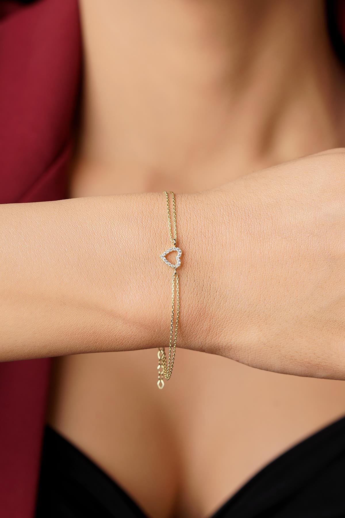 14 Ayar Altın Taşlı Kalpli Aşk Bileklik