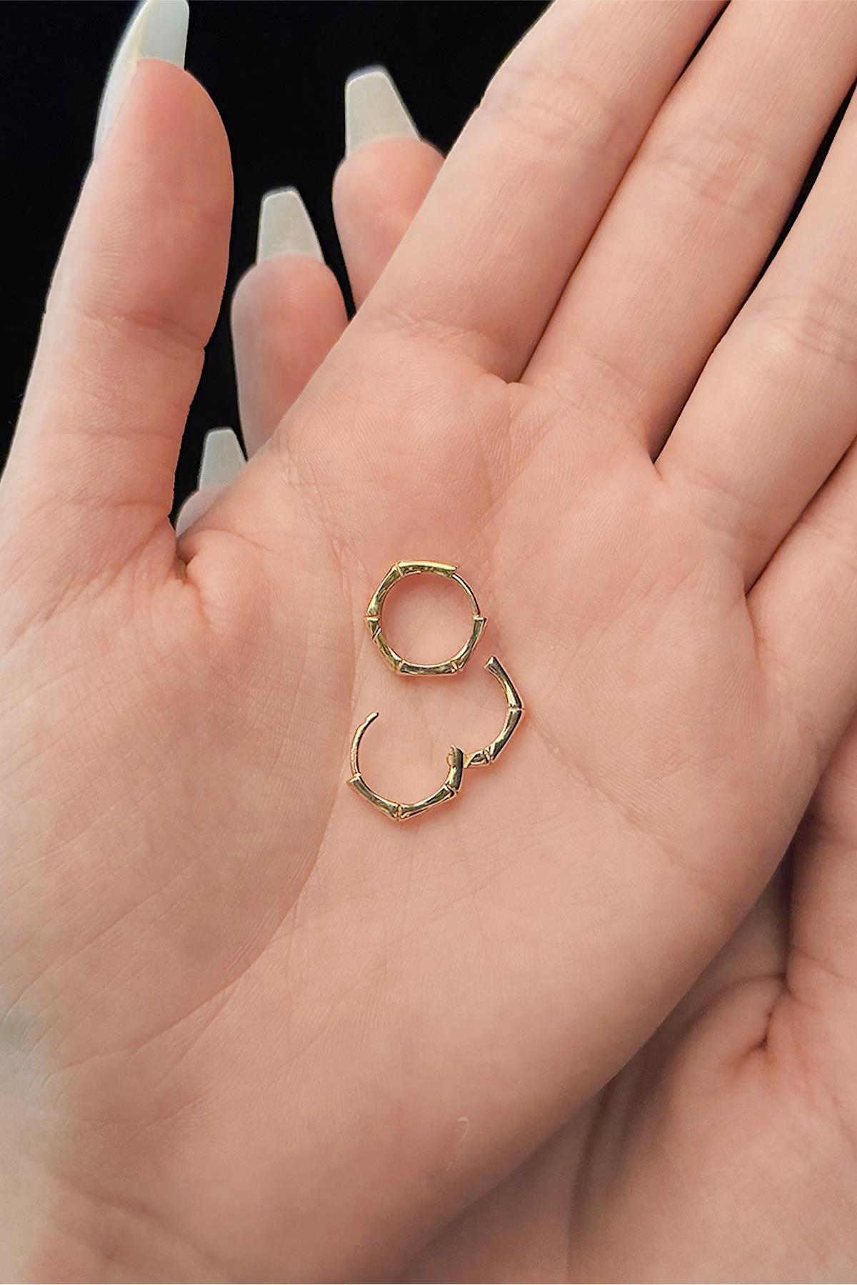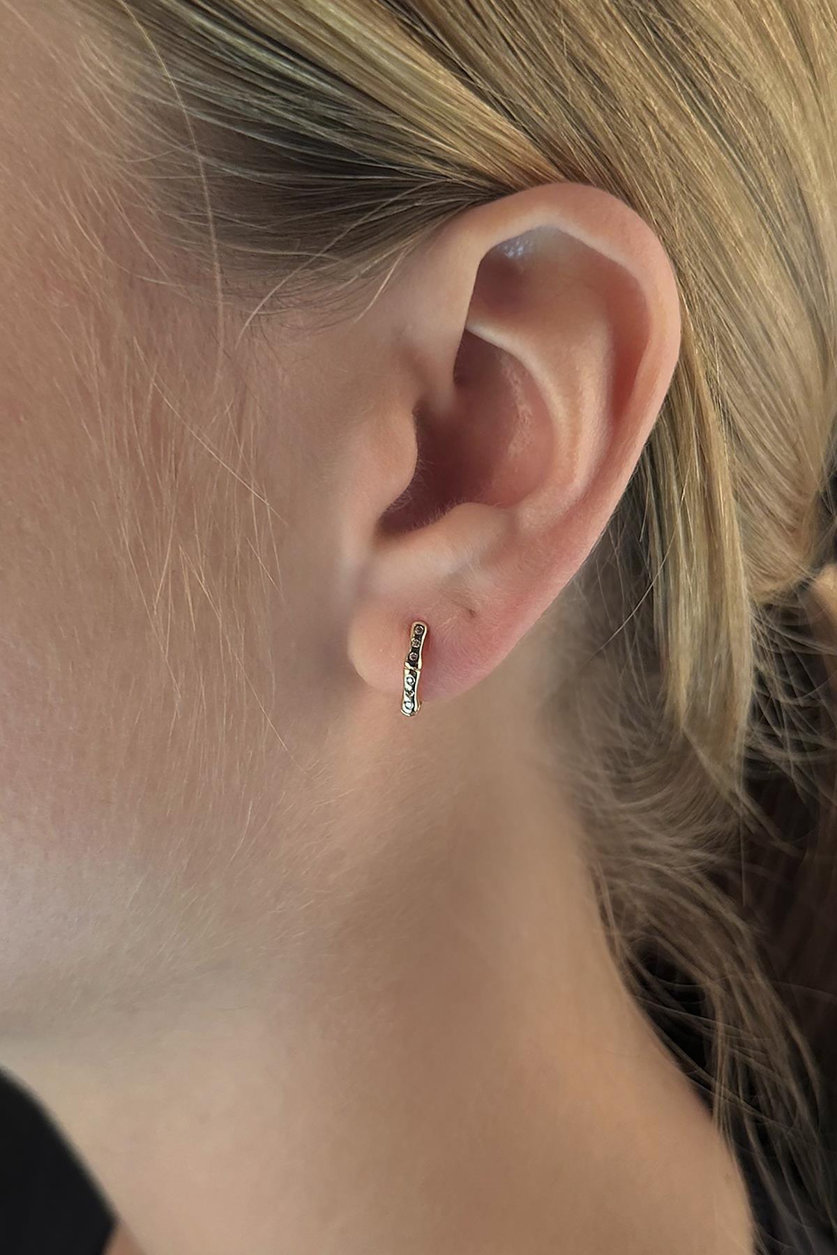 14 Ayar Altın Taşlı Kemik Desenli Küpe