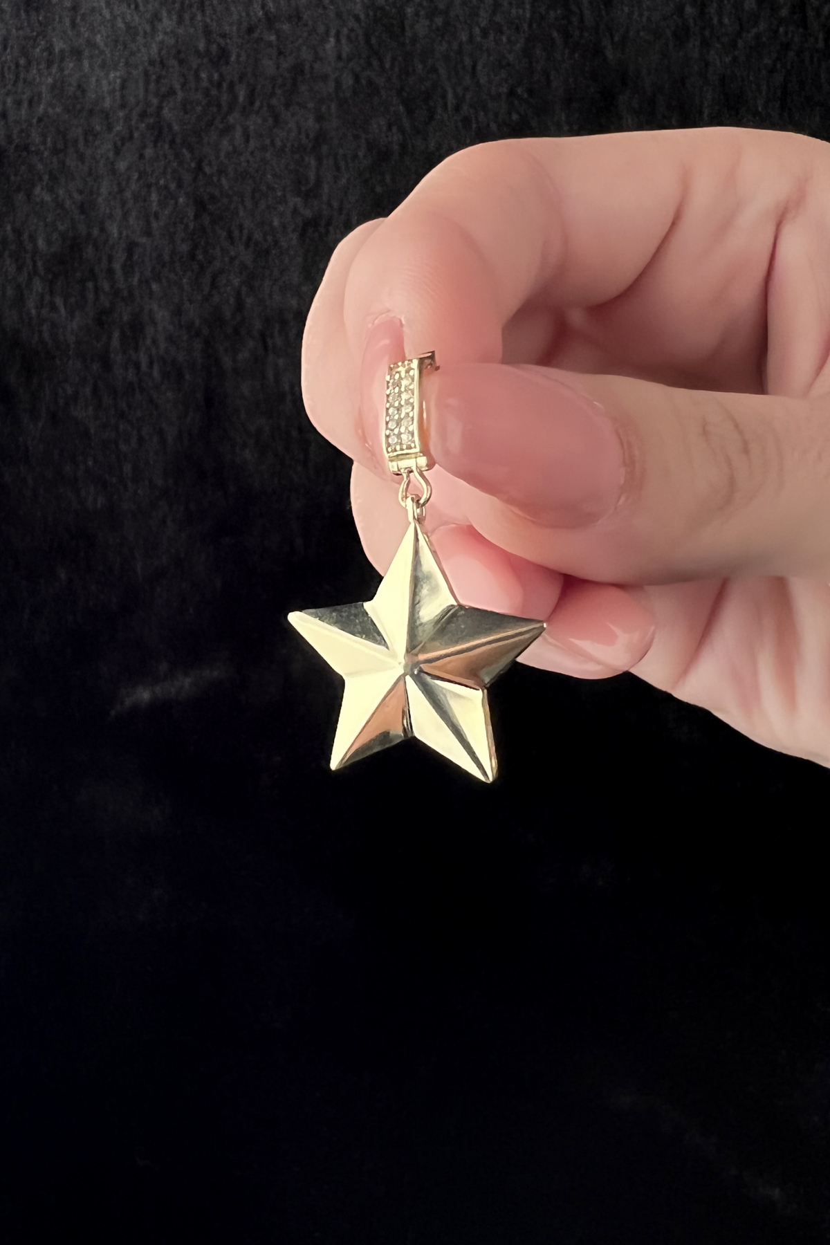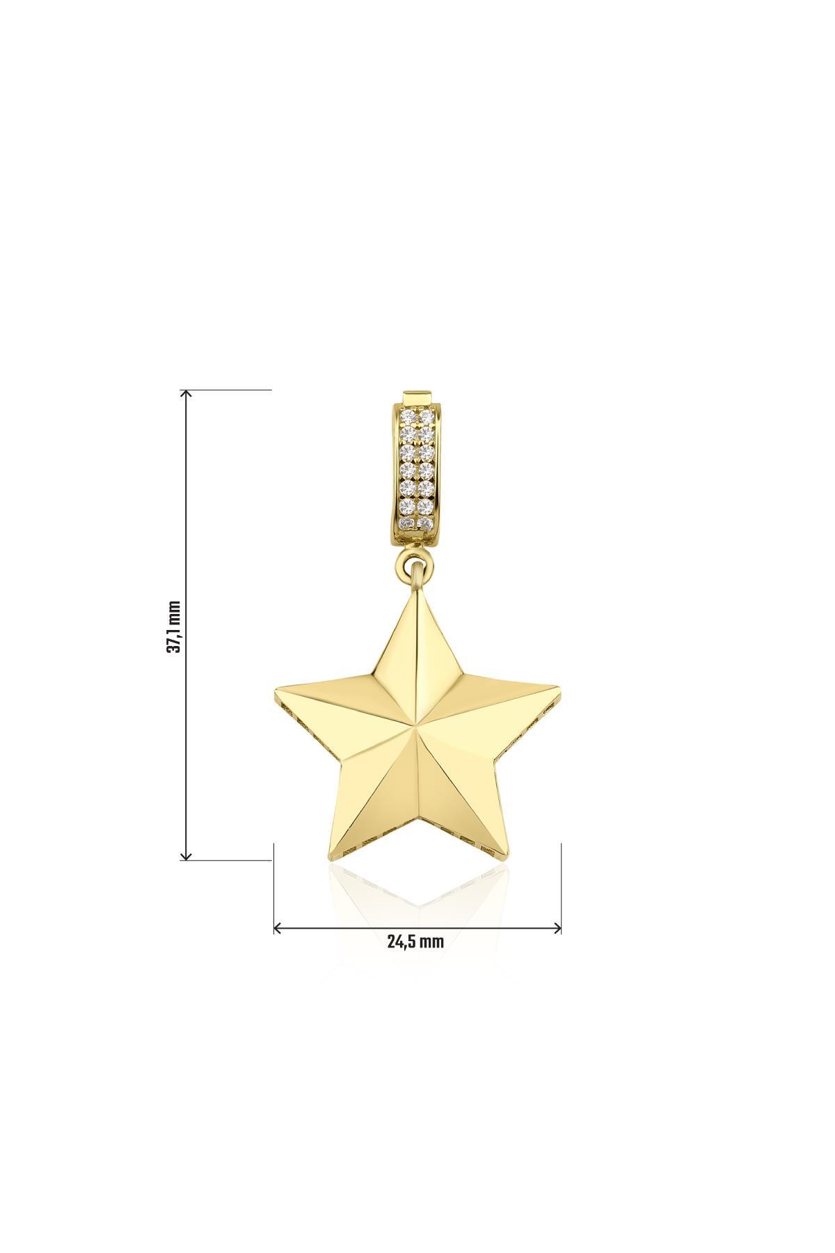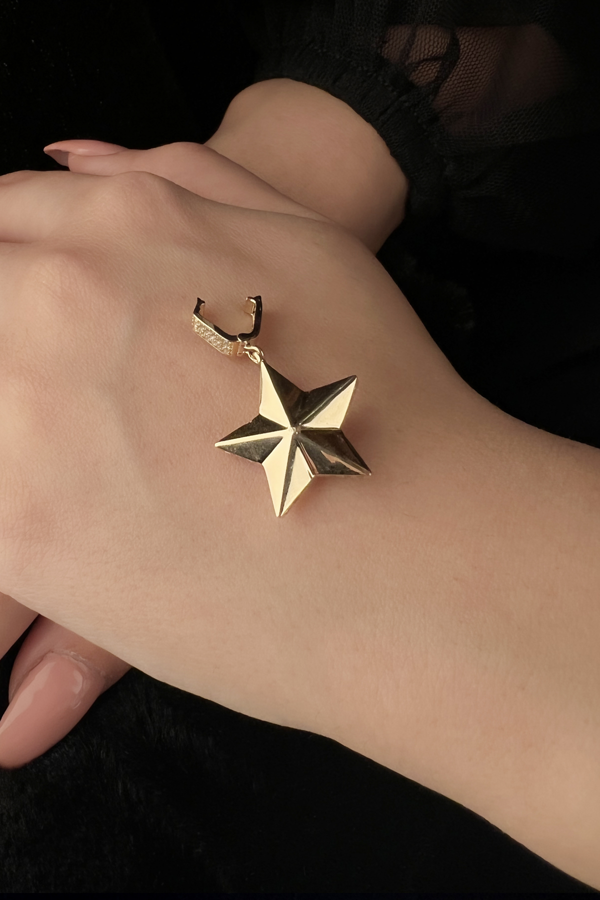 14 Ayar Altın Taşlı Kilit Detaylı Köşeli Yıldız Kolye Ucu