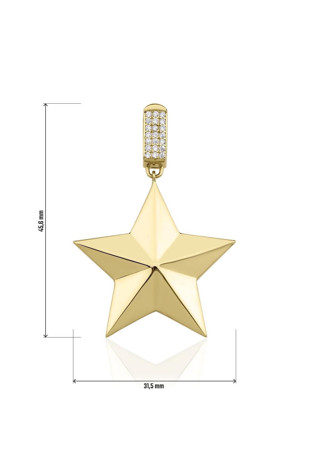 14 Ayar Altın Taşlı Kilit Detaylı Asimetrik Yıldız Kolye Ucu