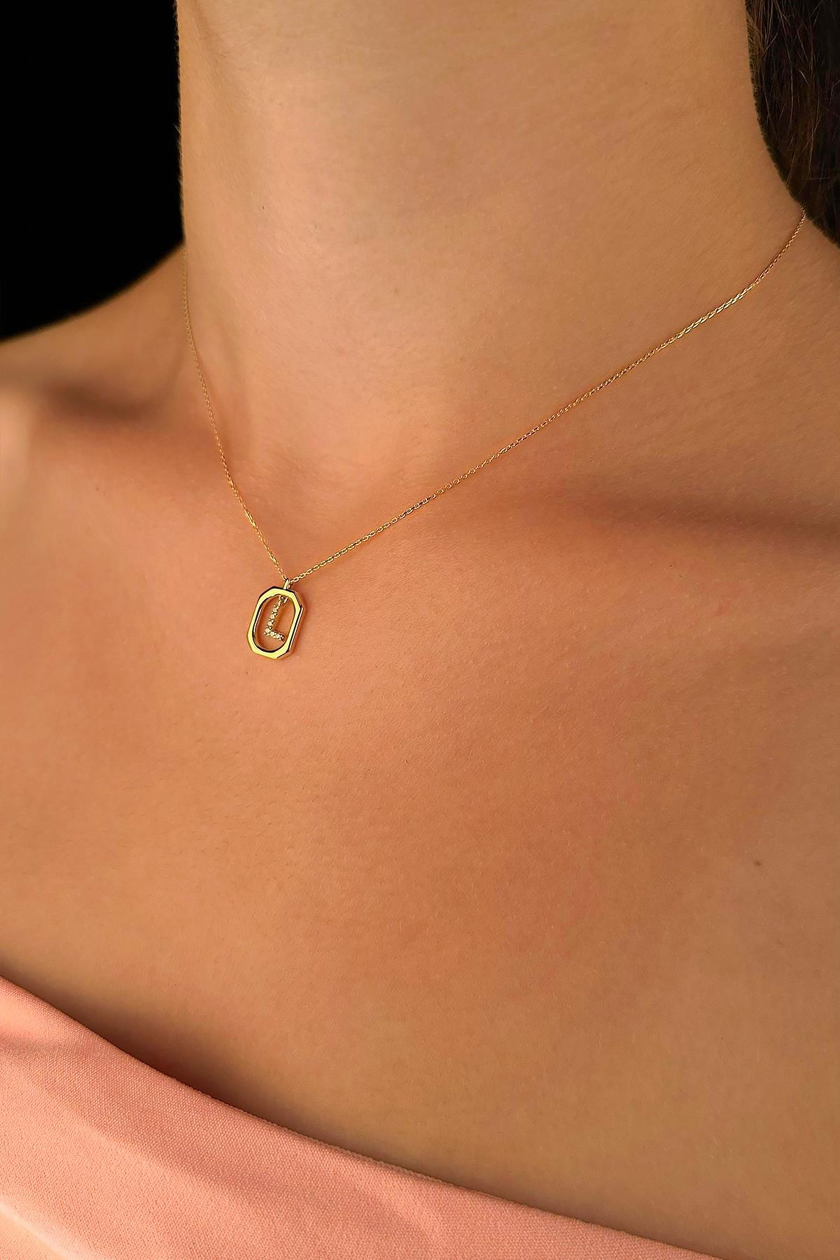 14 Ayar Altın Taşlı L Harfli Kolye