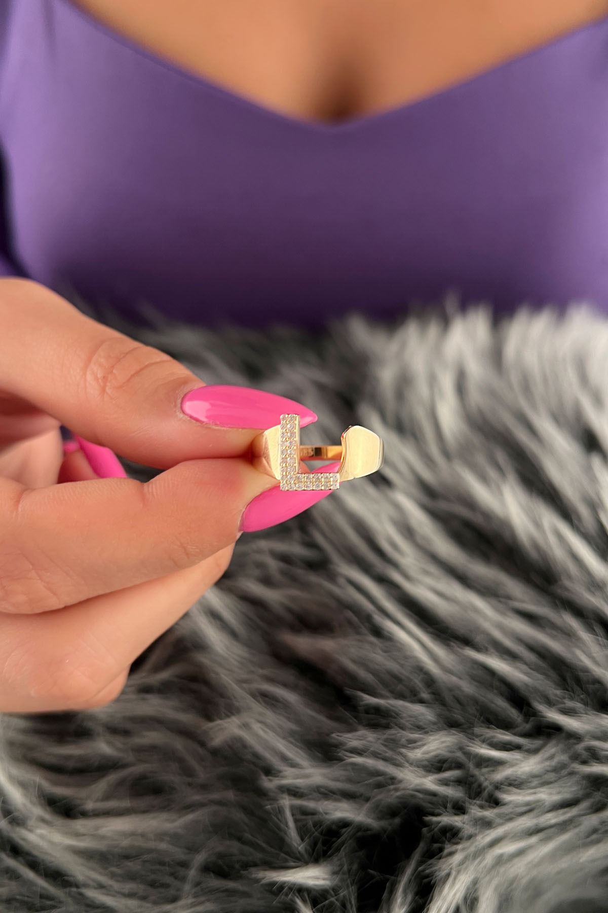 14 Ayar Altın Taşlı L Harfli Yüzük