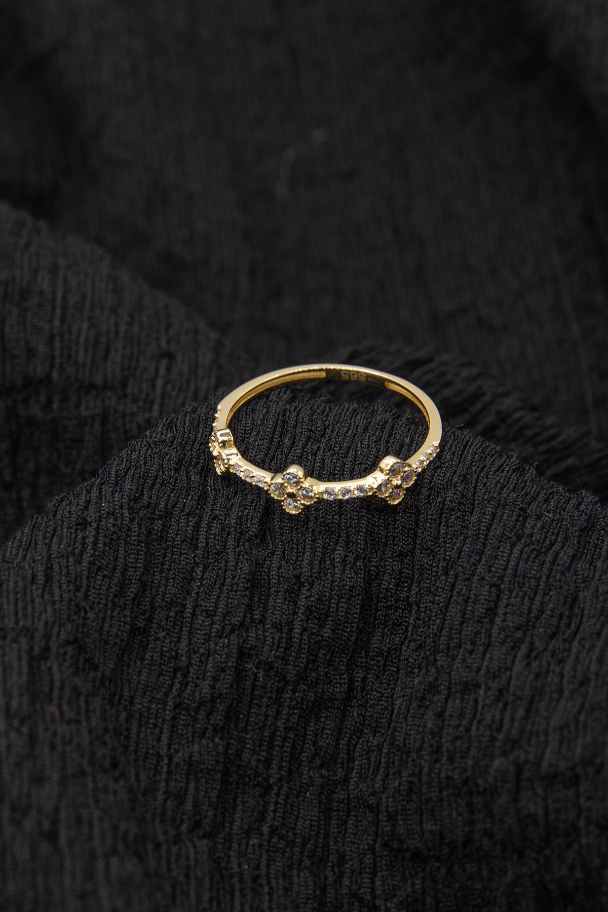 14 Ayar Altın Taşlı Papatya Yüzük