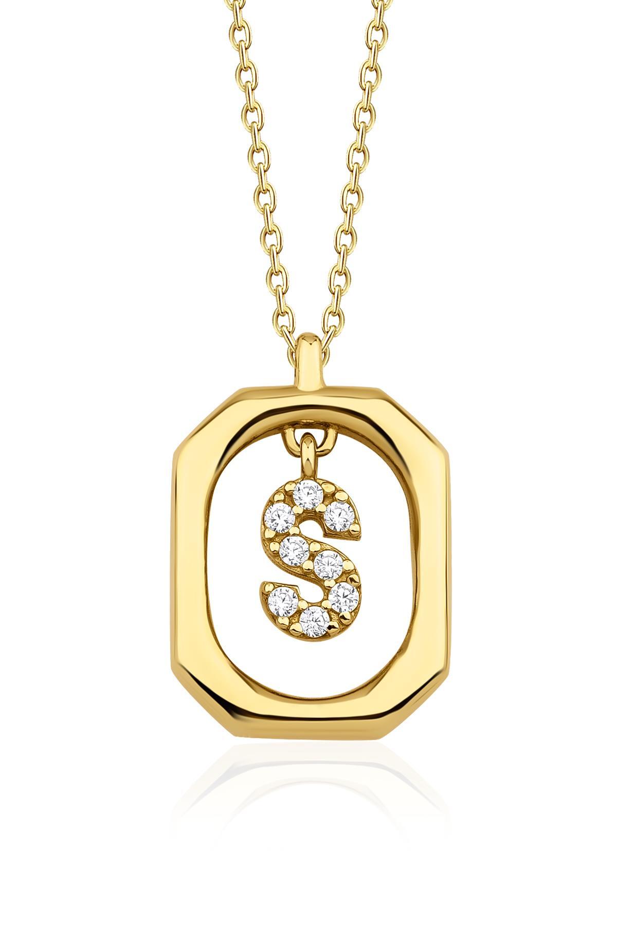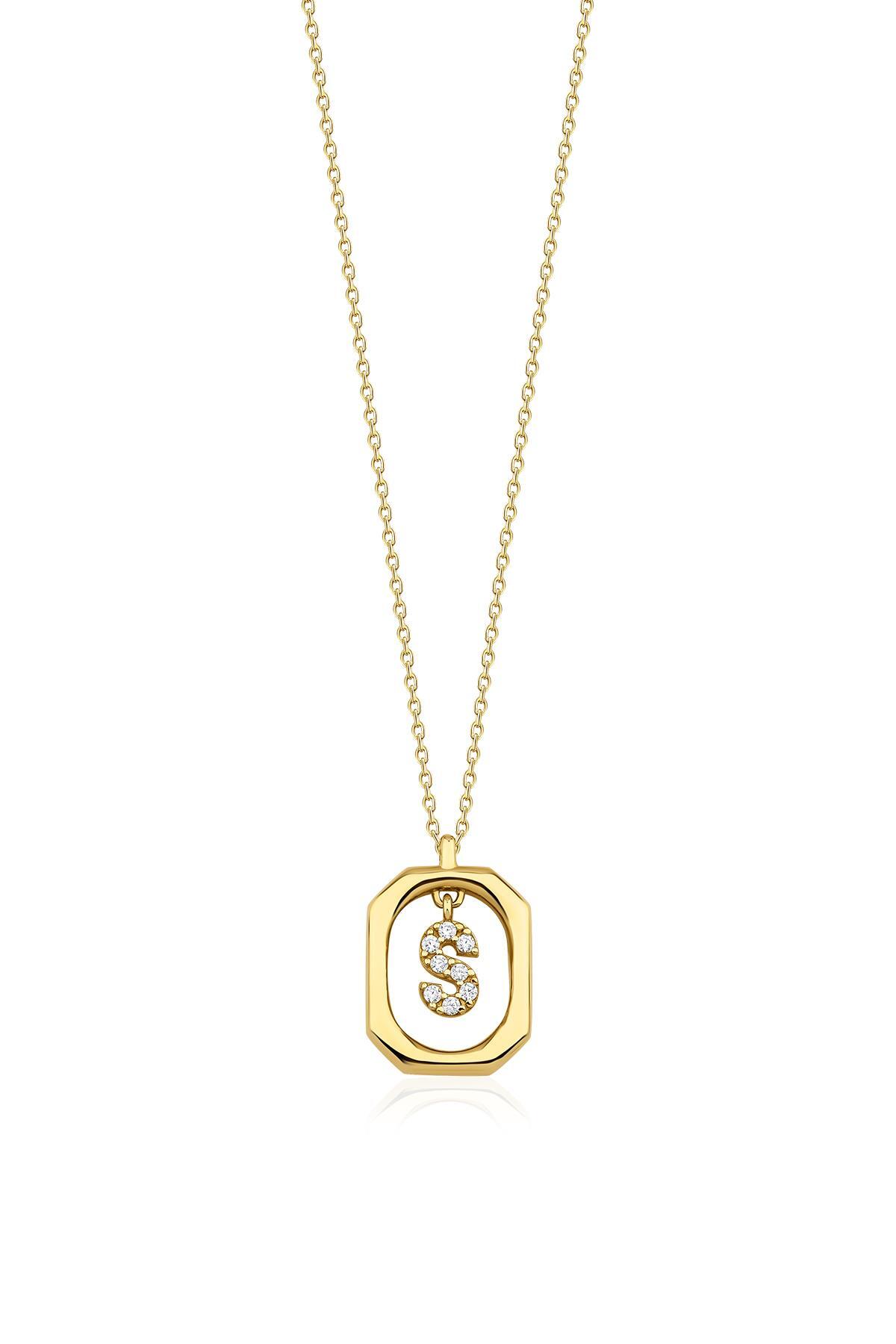 14 Ayar Altın Taşlı Ş Harfli Kolye