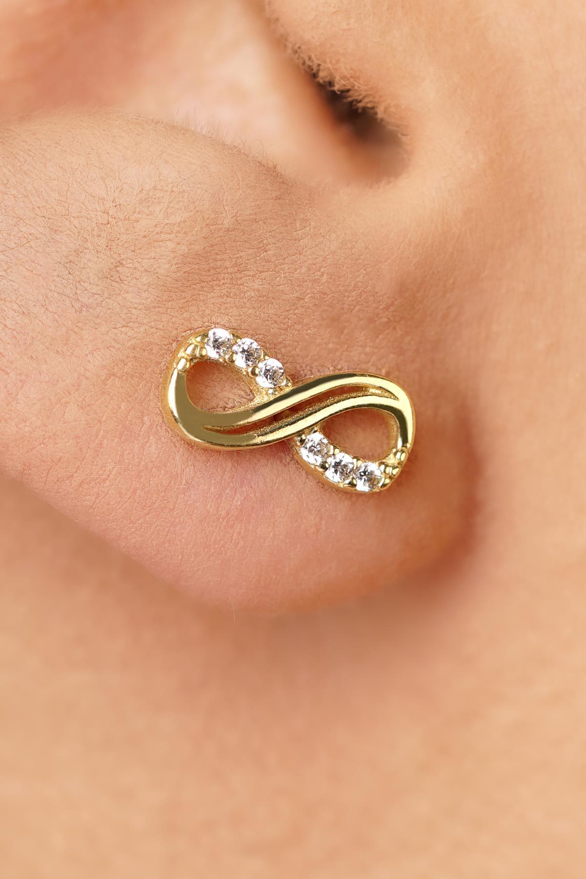 14 Ayar Altın Taşlı Sonsuzluk Küpe