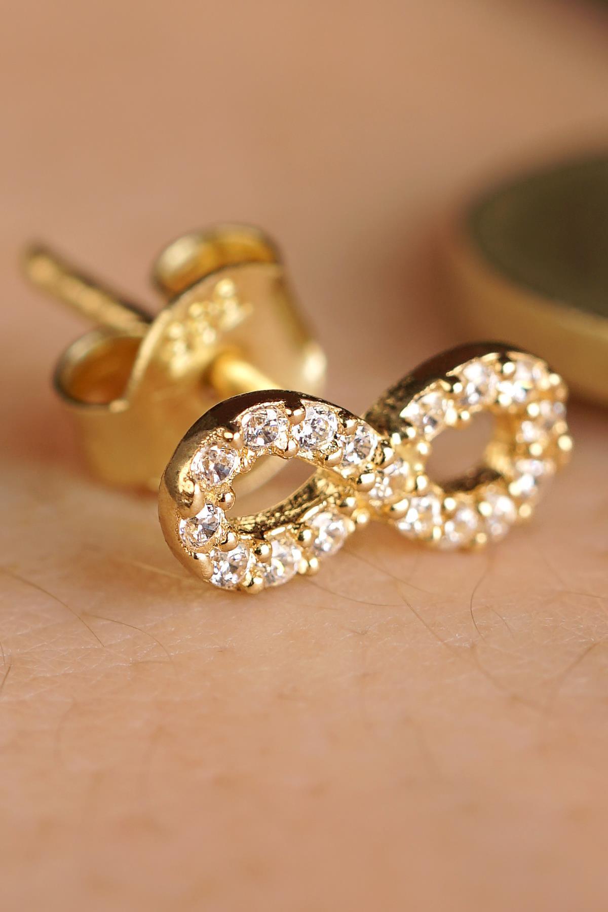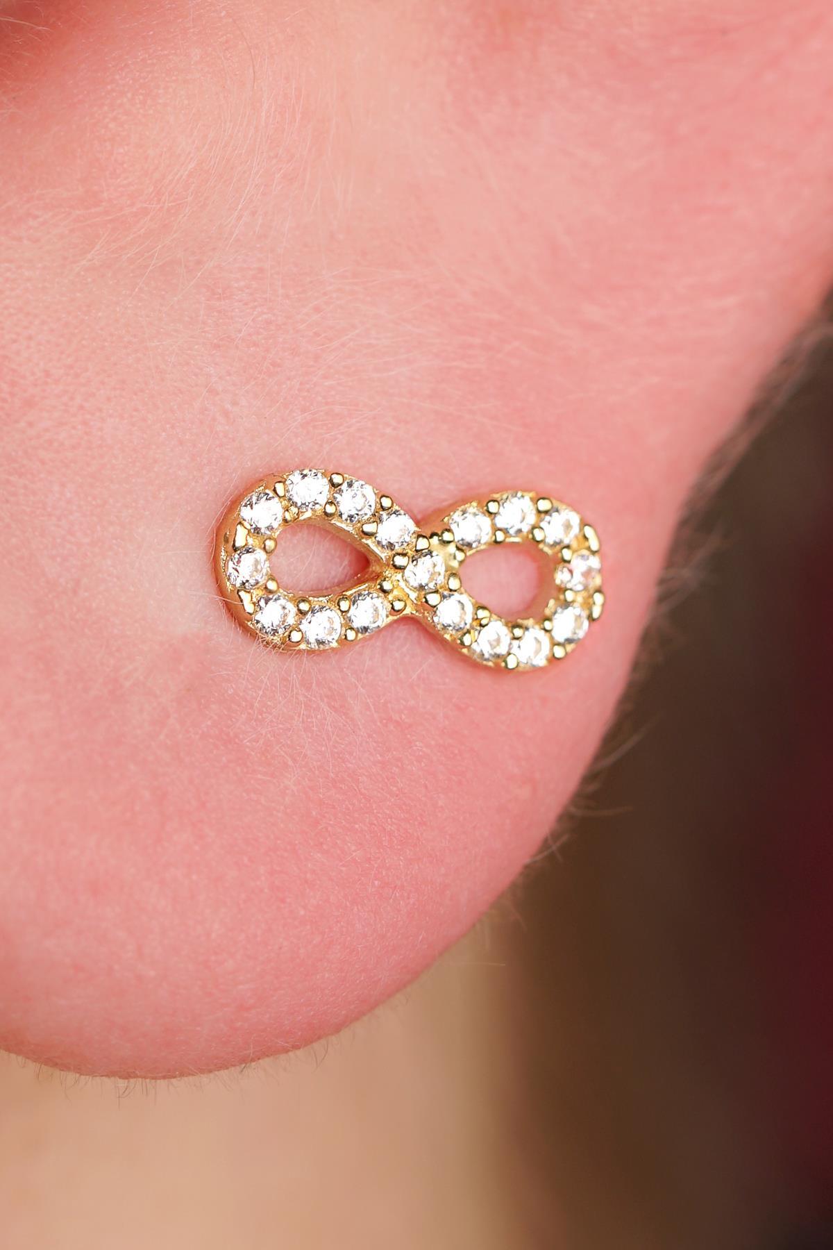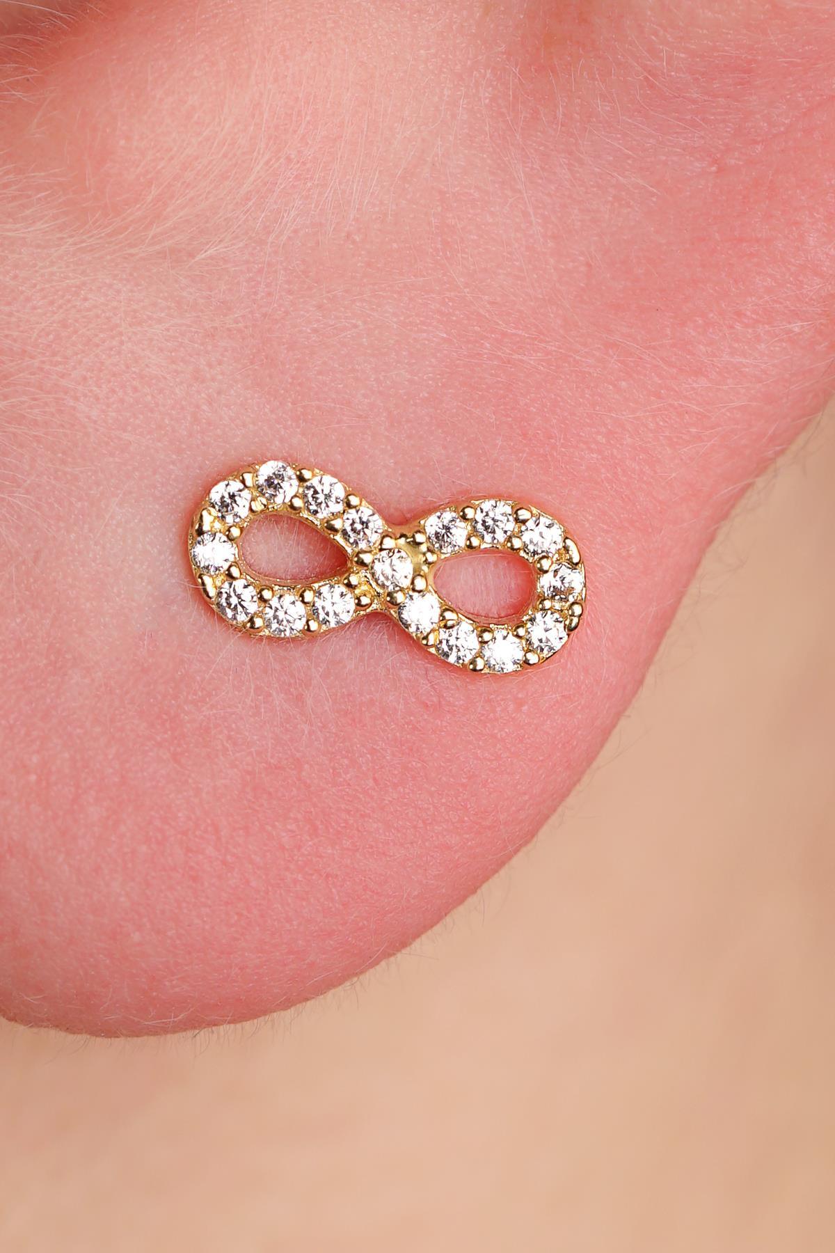 14 Ayar Altın Taşlı Sonsuzluk Küpe Erkek