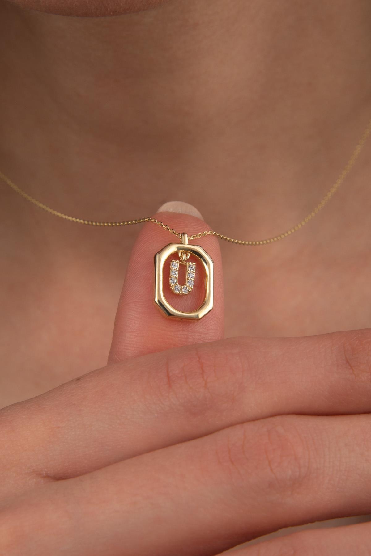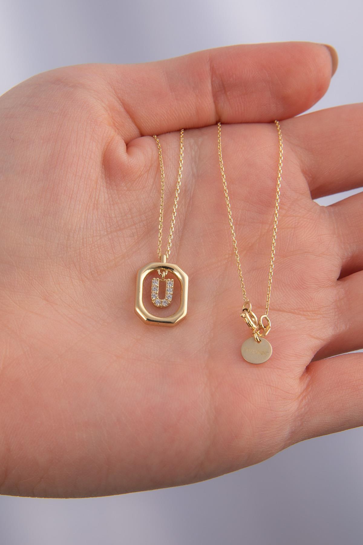 14 Ayar Altın Taşlı Ş Harfli Kolye