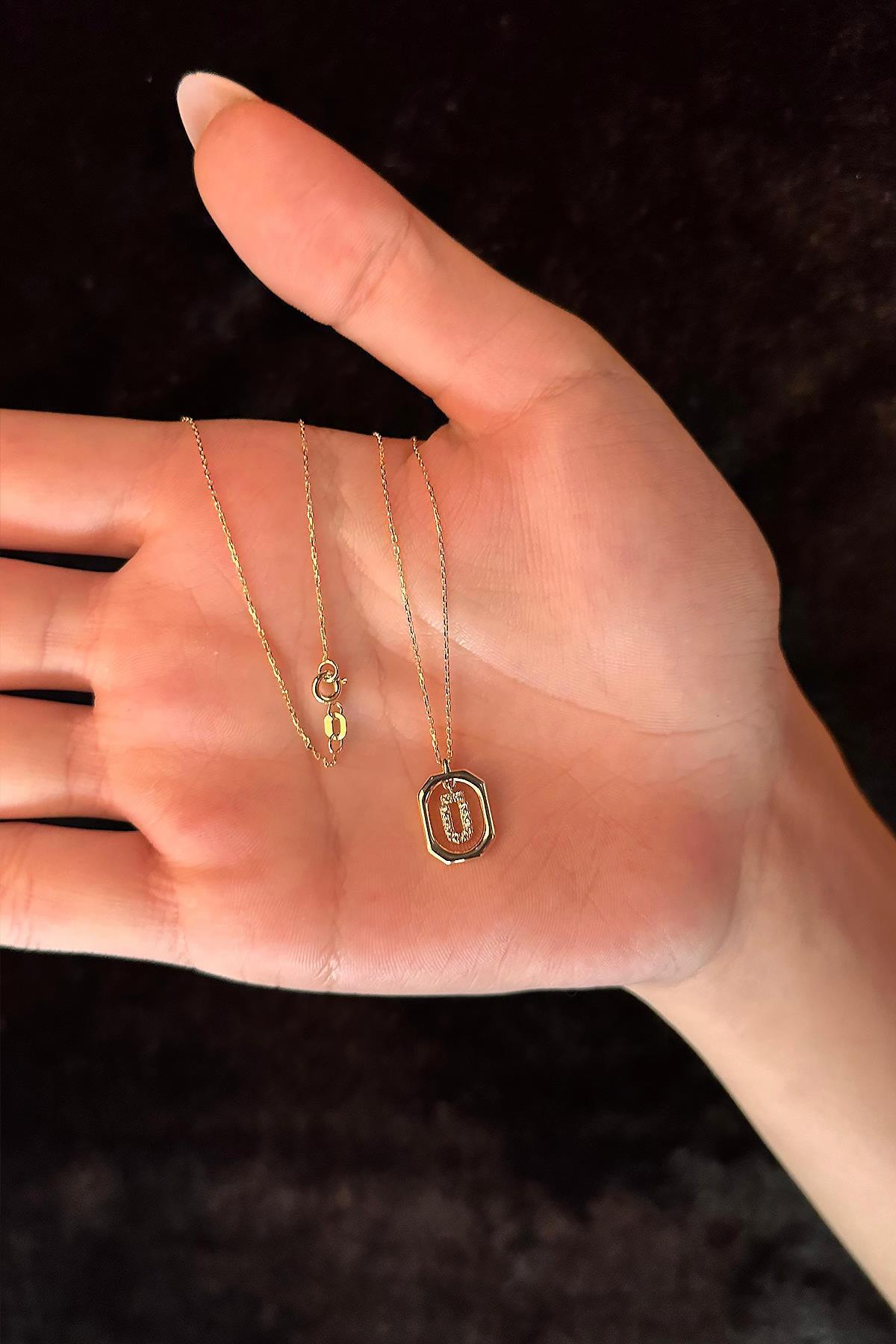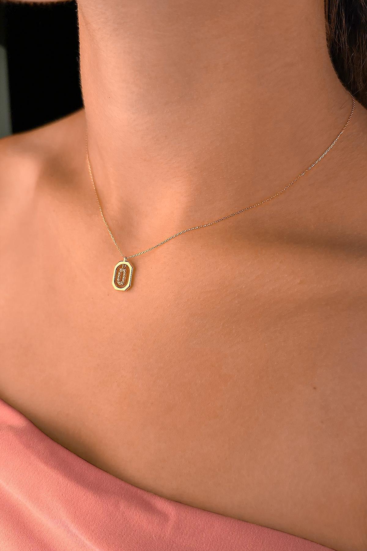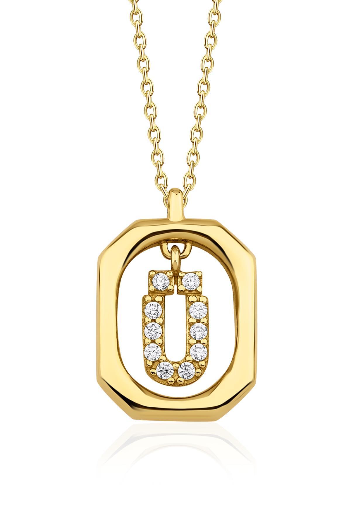 14 Ayar Altın Taşlı Ü Harfli Kolye