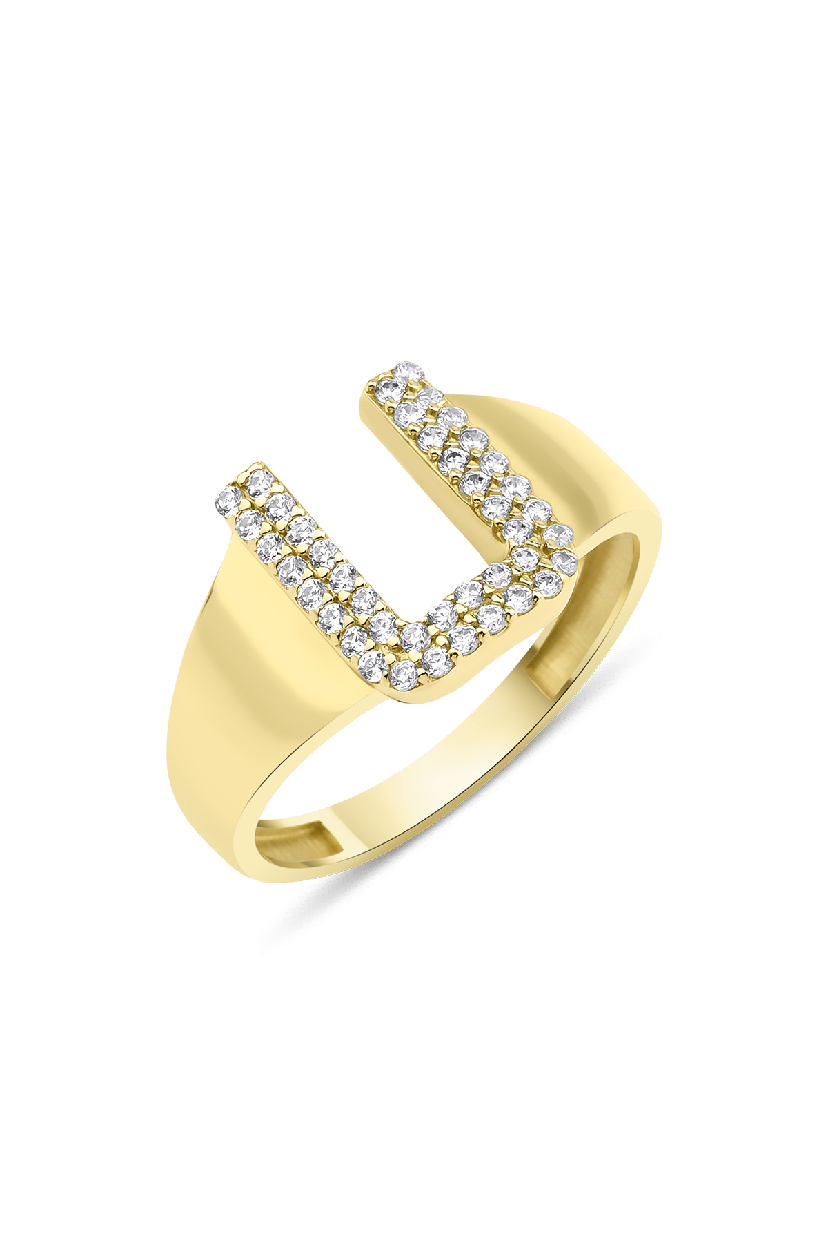 14 Ayar Altın Taşlı U Harfli Yüzük