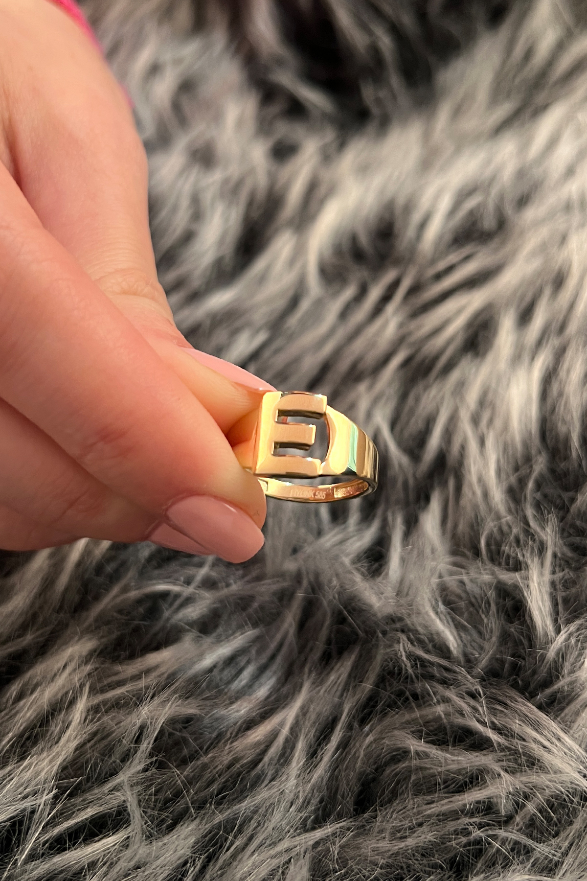 14 Ayar Altın Taşlı E Harfli Yüzük