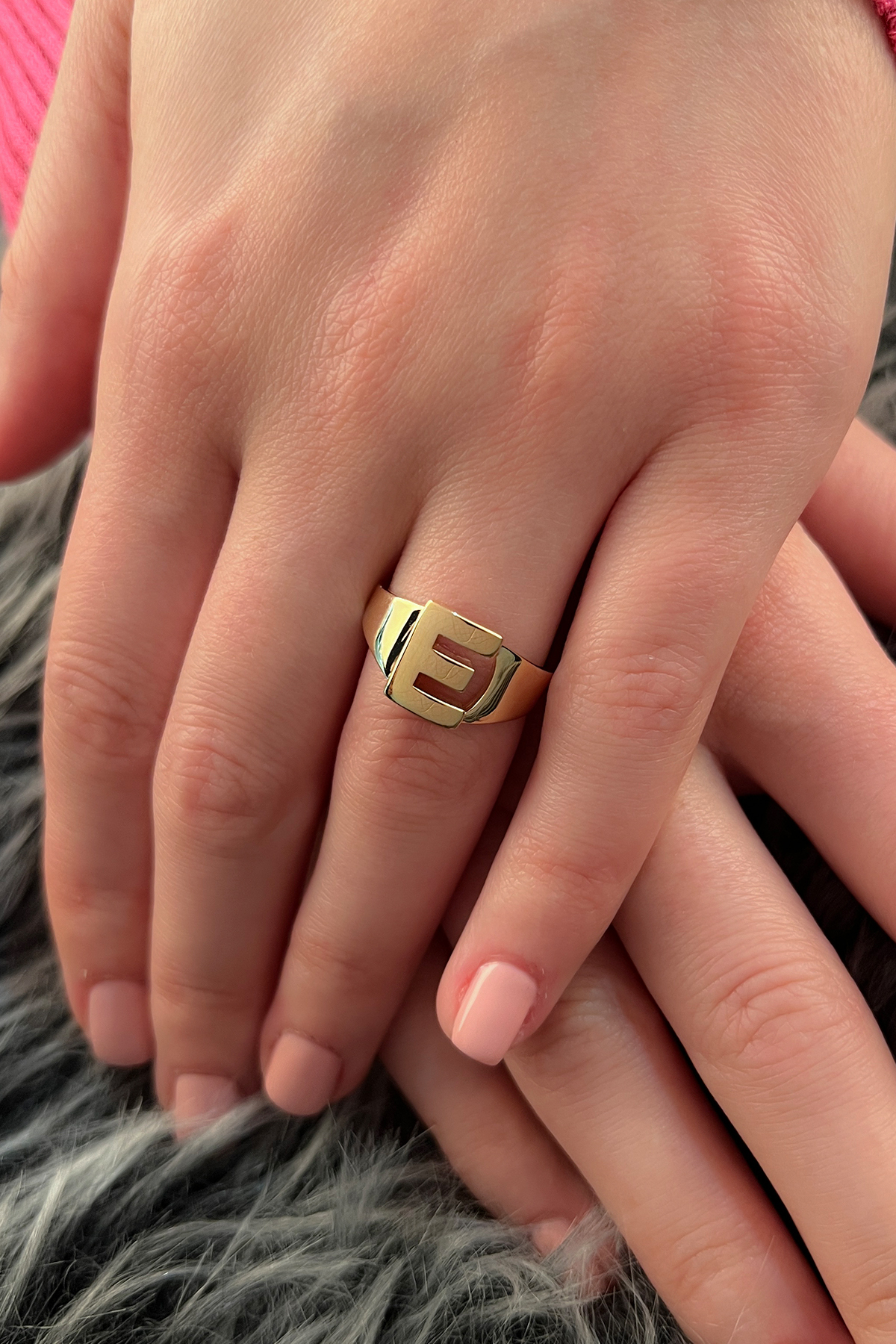 14 Ayar Altın Taşsız E Harfli Yüzük