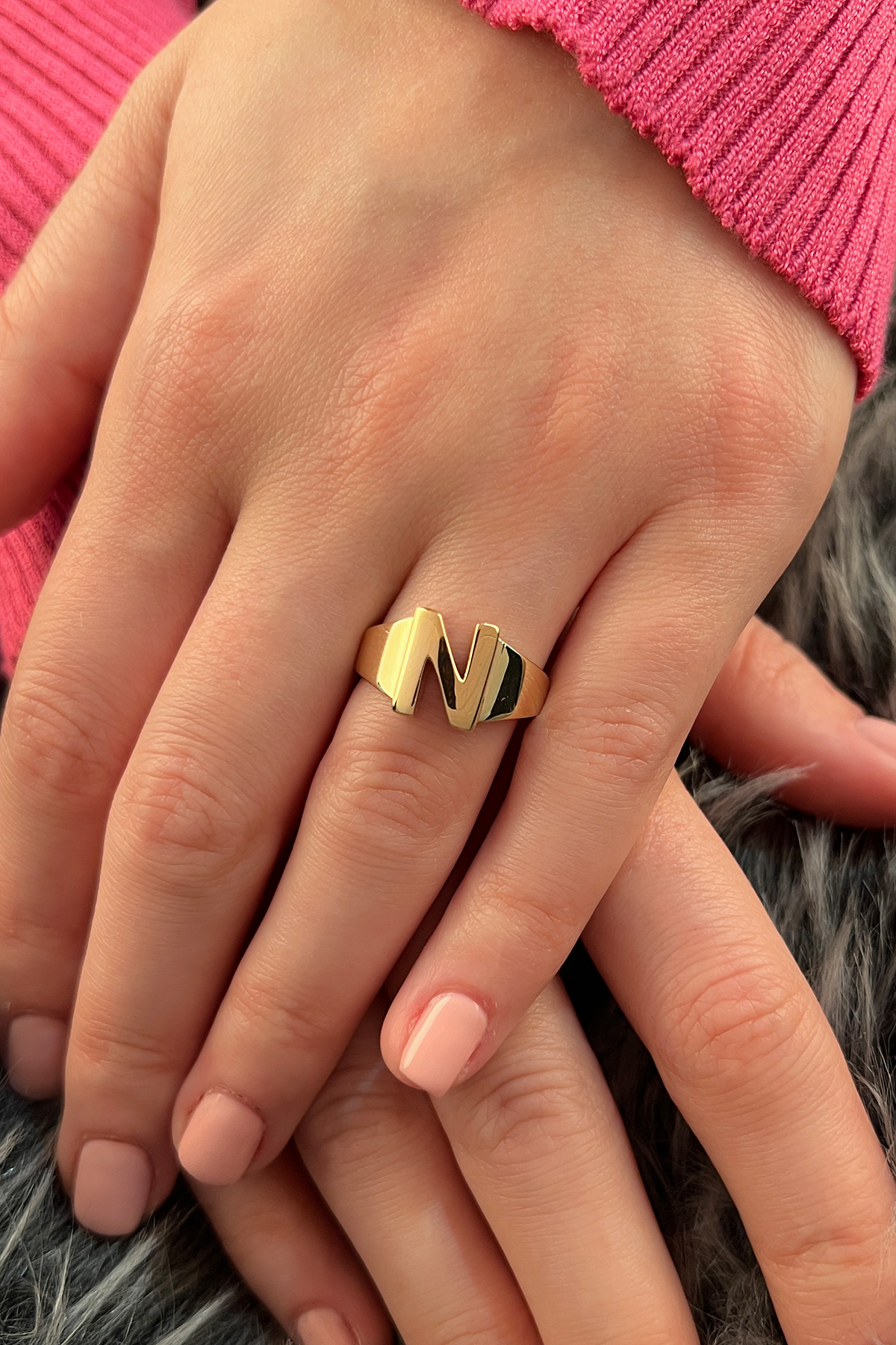 14 Ayar Altın Taşsız N Harfli Yüzük