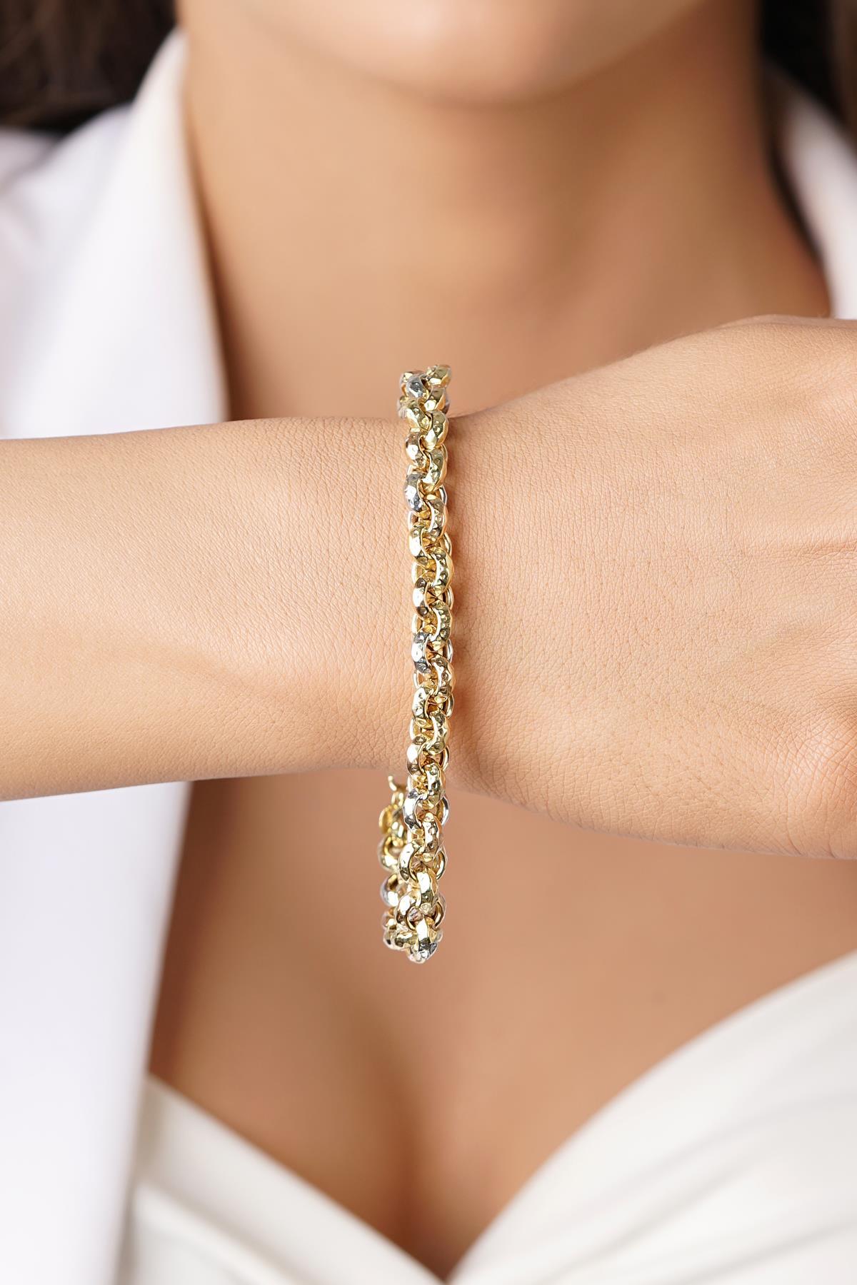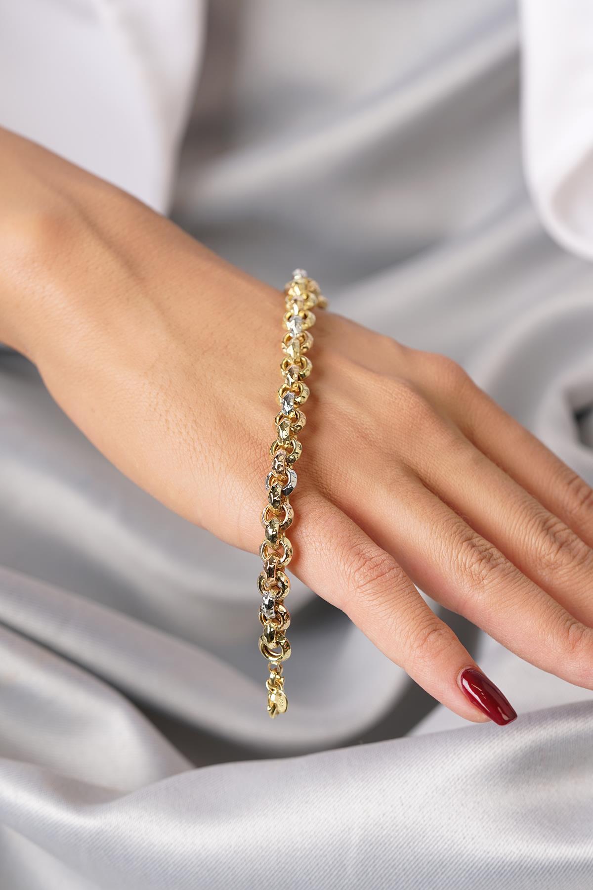 14 Ayar Altın Tek Sıra Renkli Doch Bileklik