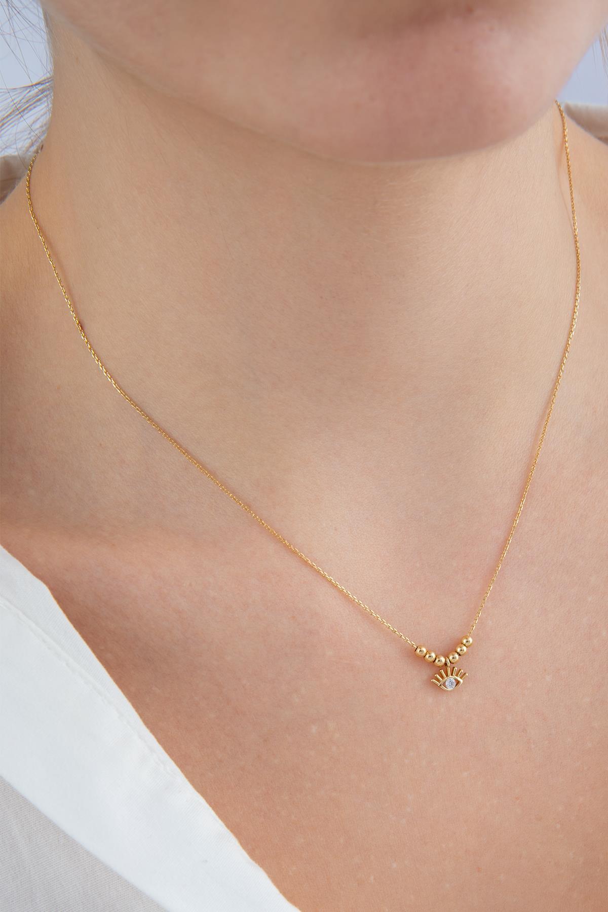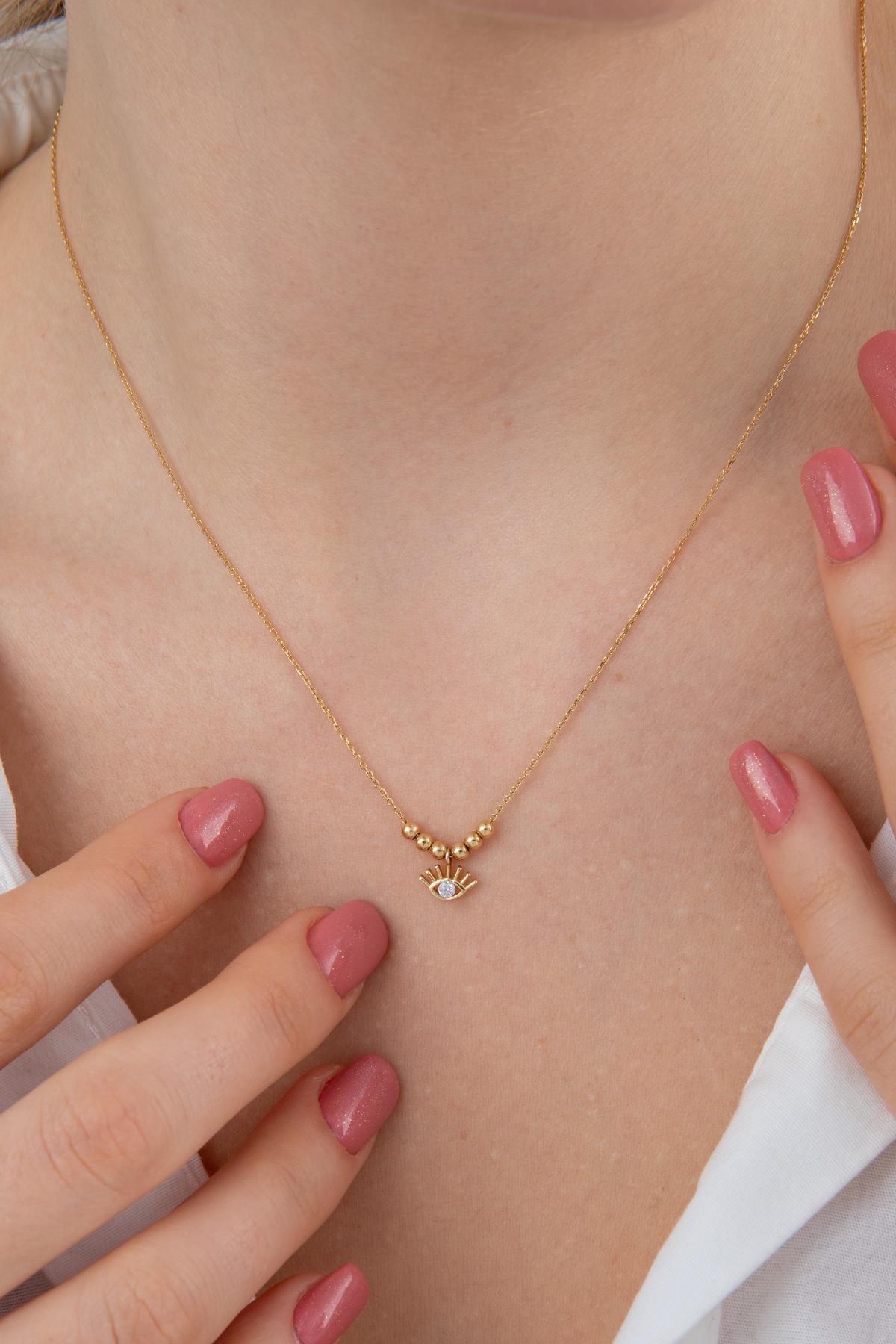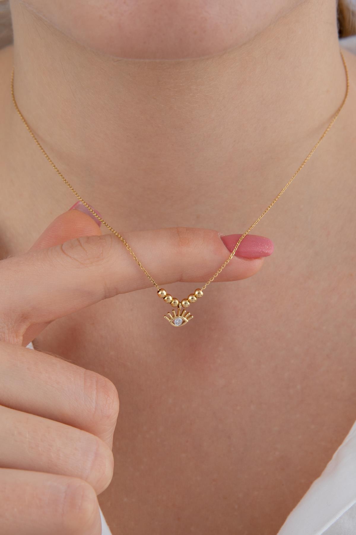14 Ayar Altın Tek Taş Detaylı Göz Kolye