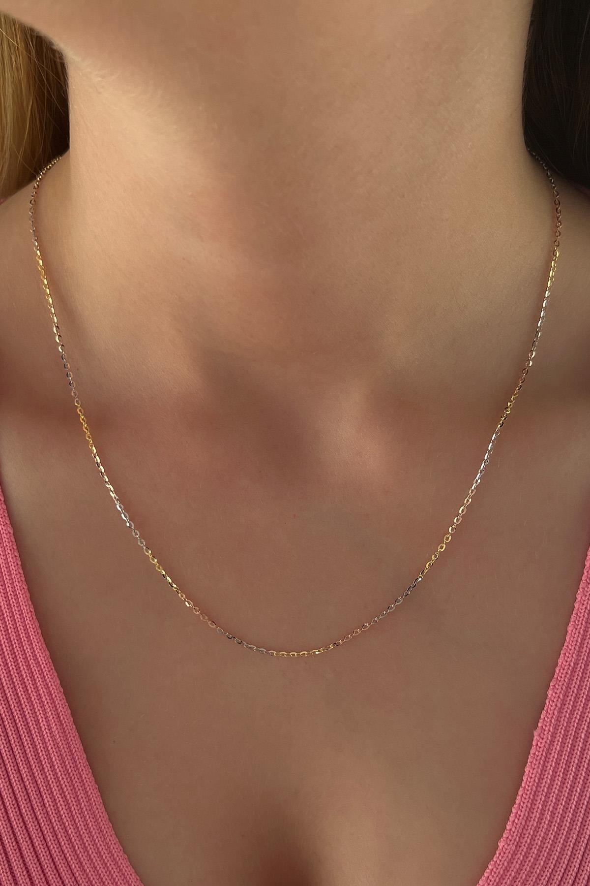 14 Ayar Altın Üç Renkli Forse Zincir