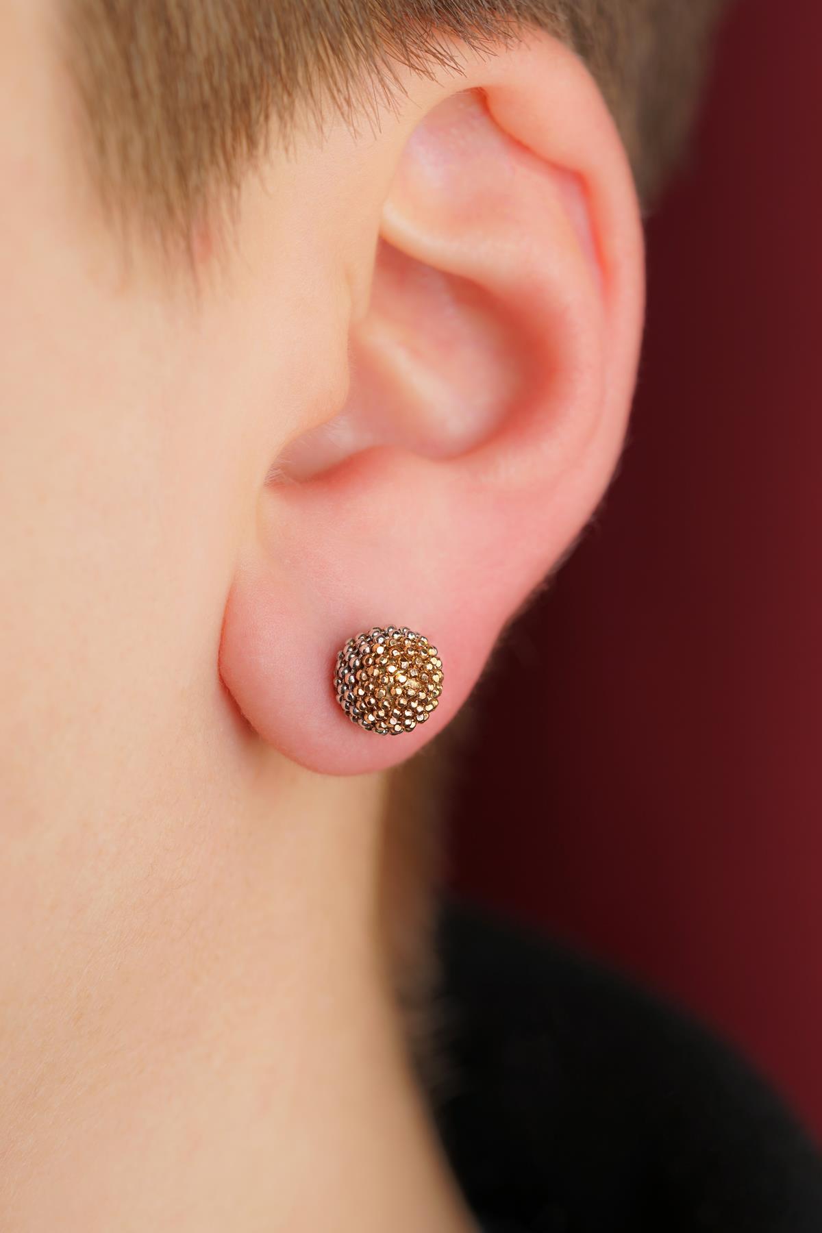 14 Ayar Altın Mini Yuvarlak Top Küpe Erkek