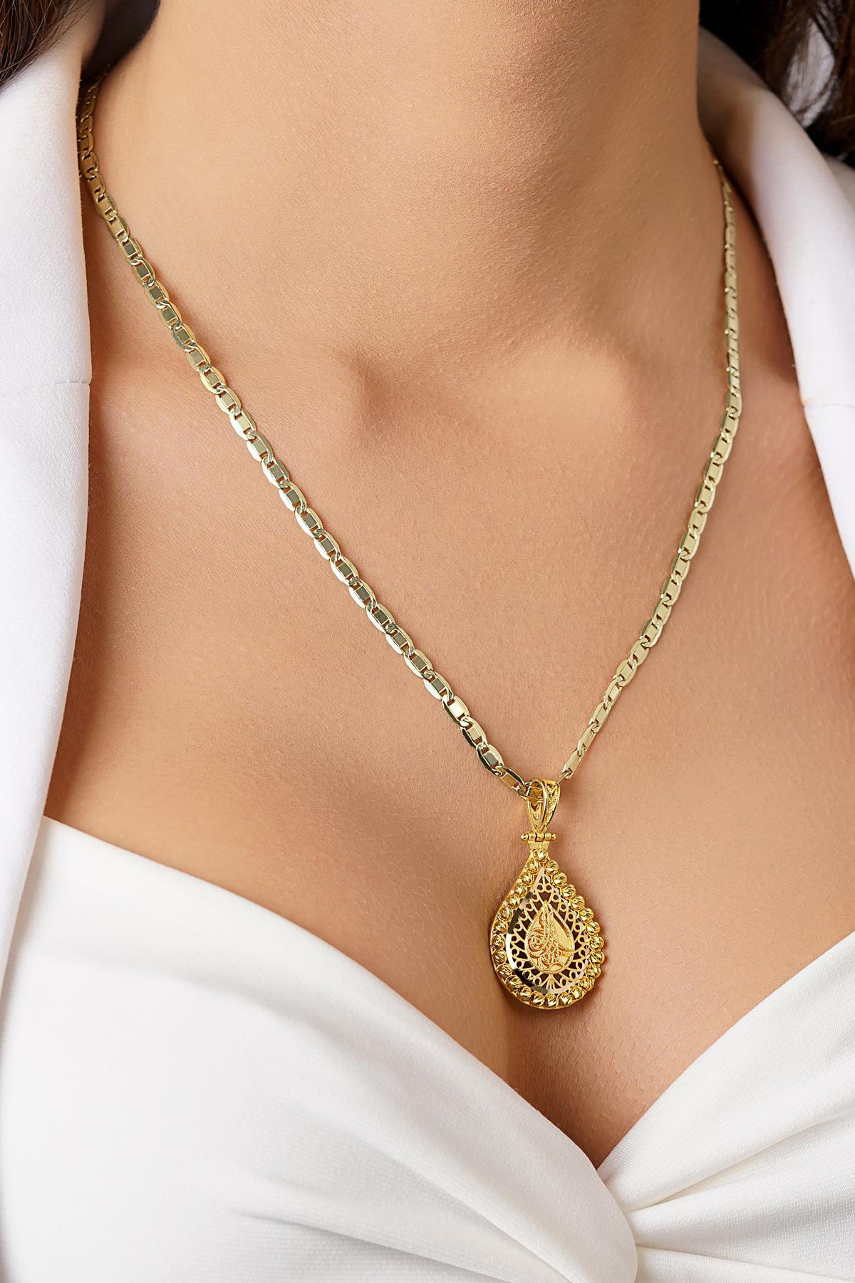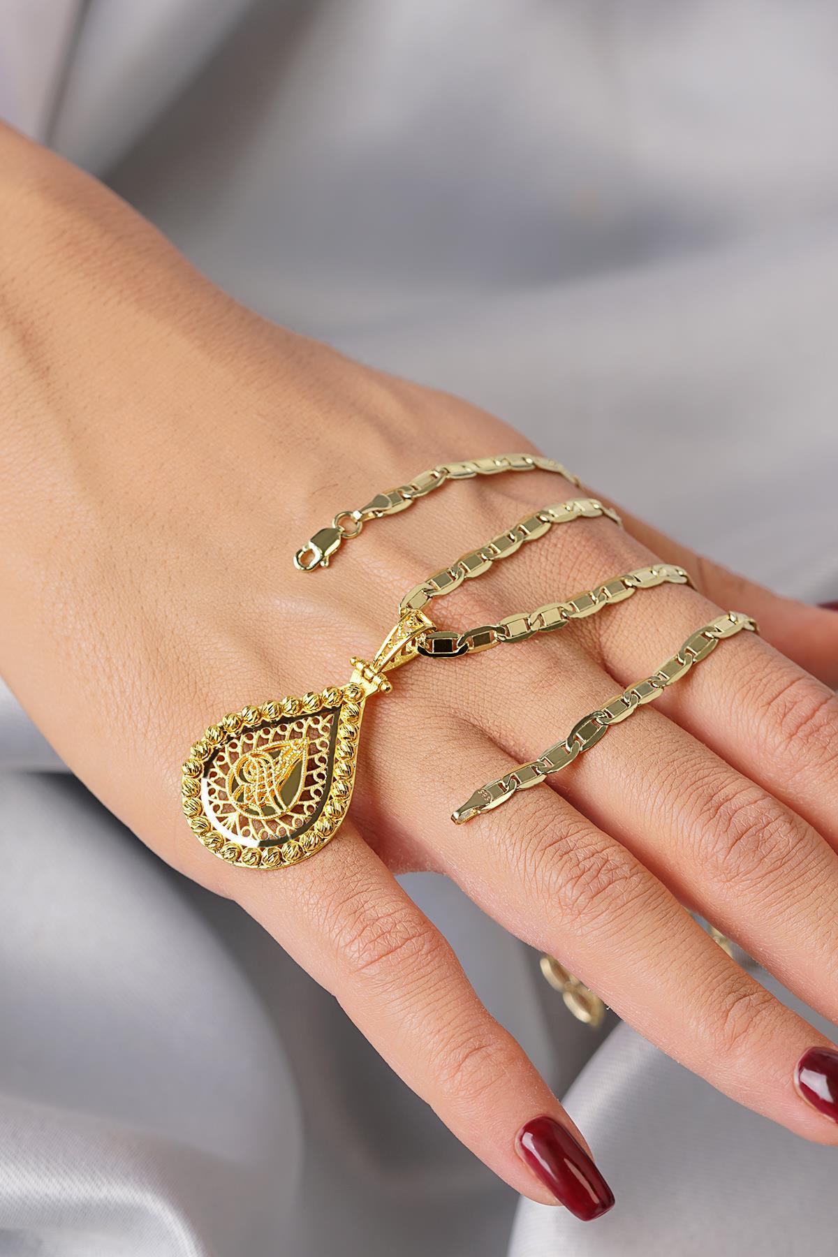 14 Ayar Altın Dorika Top Detaylı Tuğra Kolye