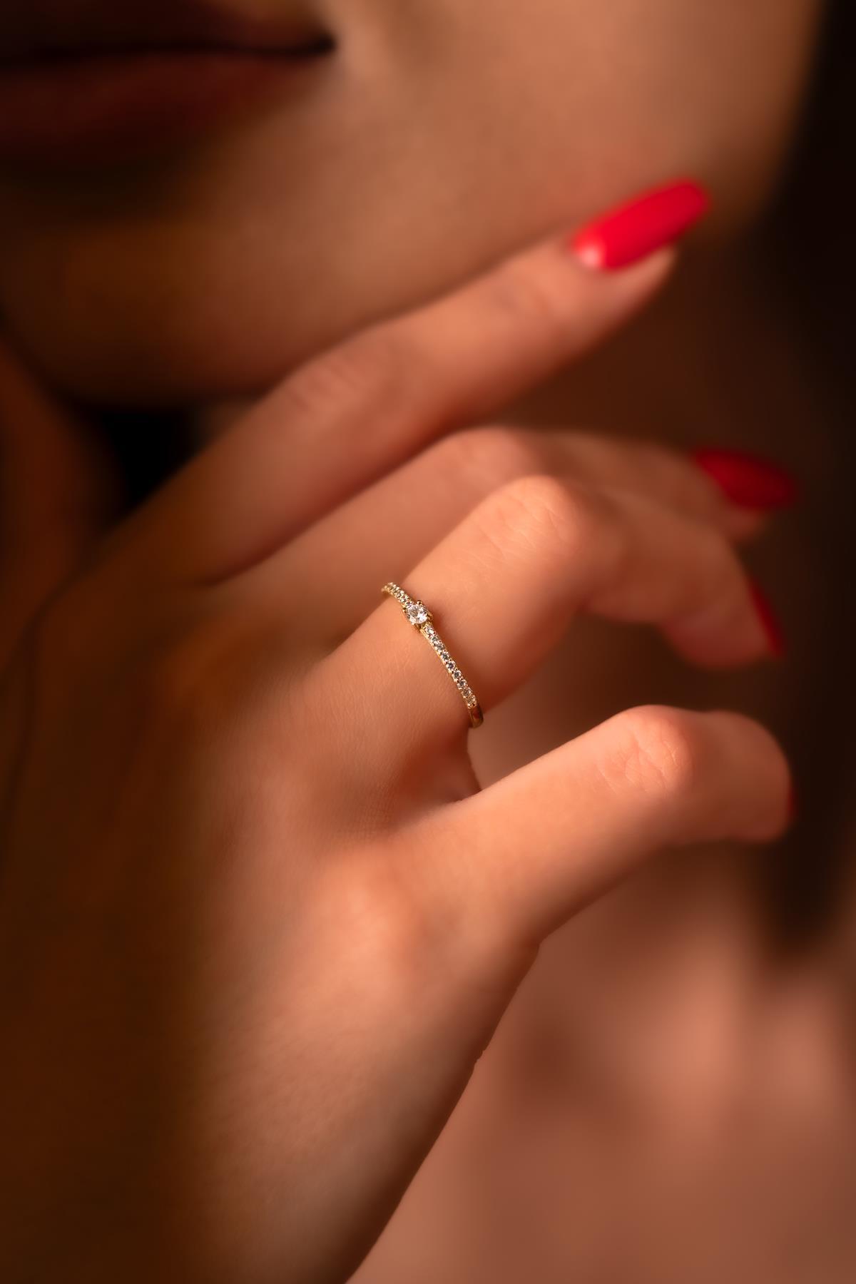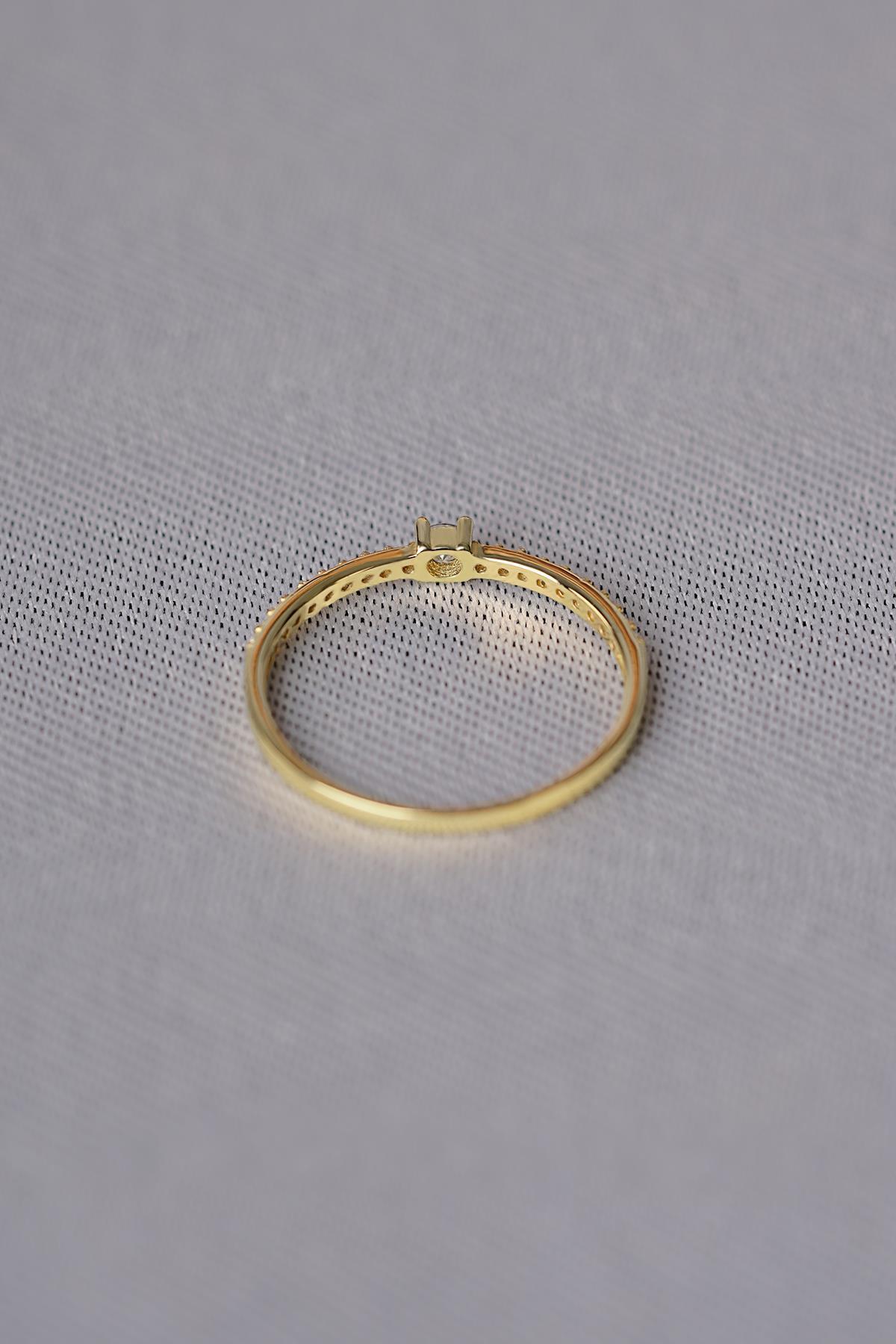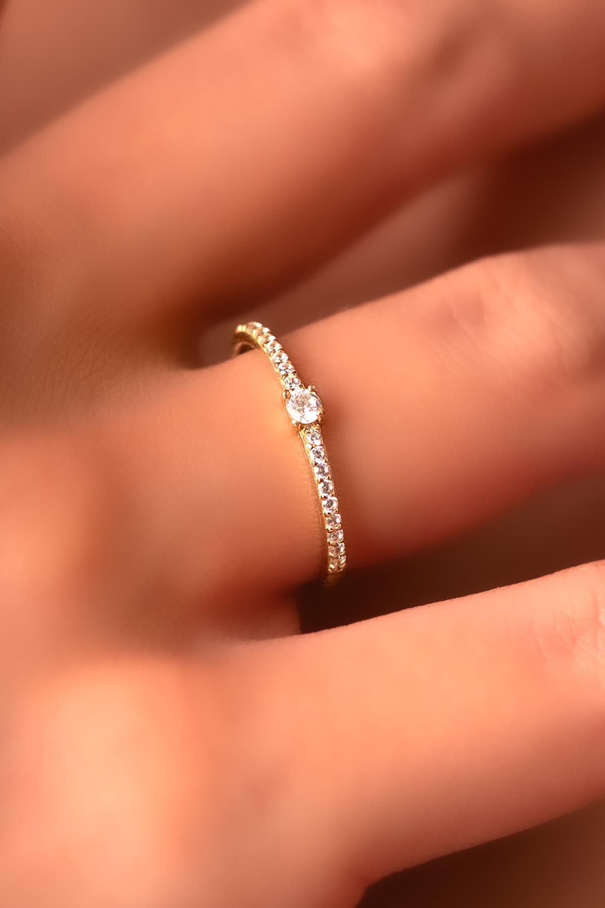 14 Ayar Altın Yarım Tur Taşlı Tek Taş Yüzük