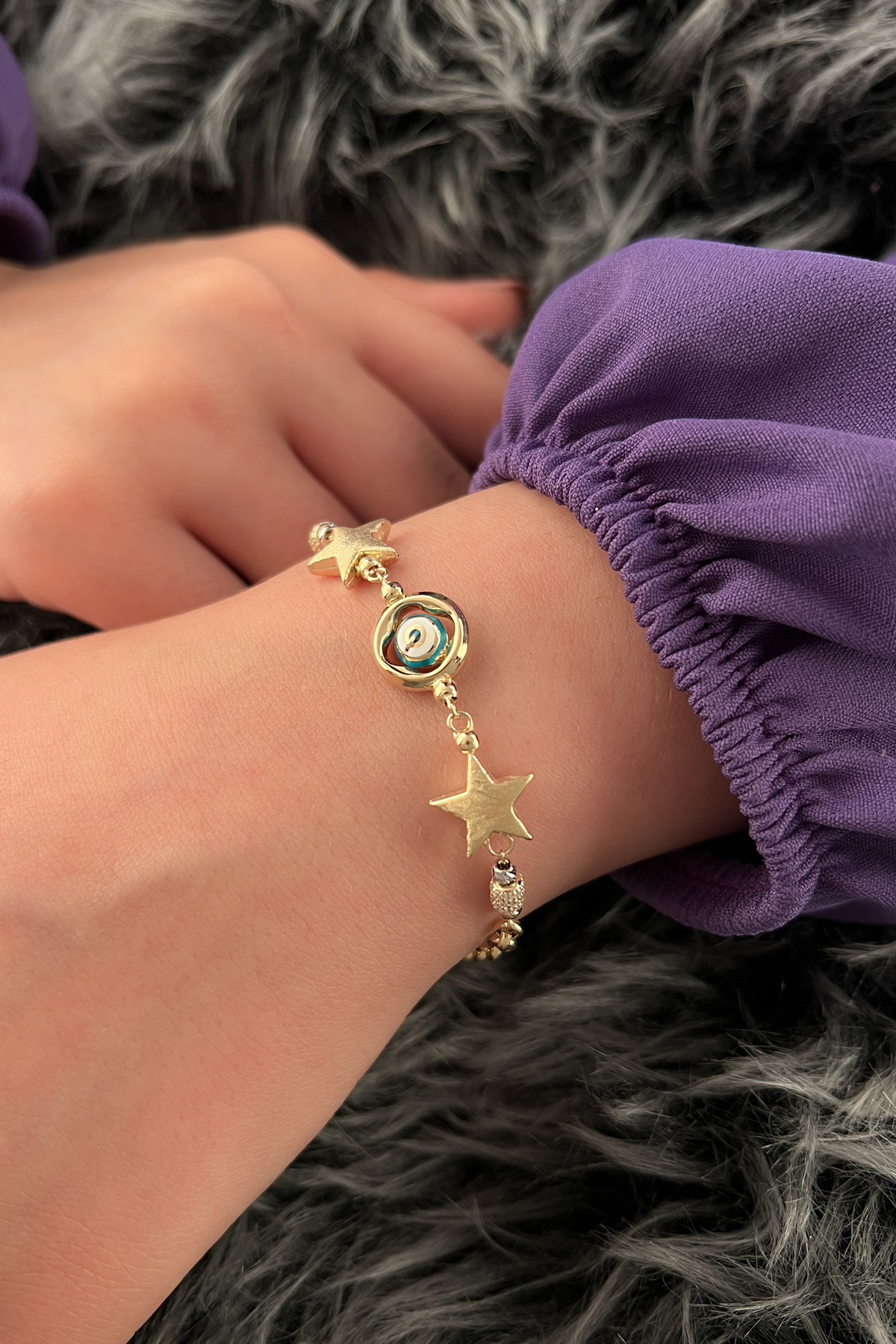 14 Ayar Altın Yıldız Detaylı Nazarlık Bileklik