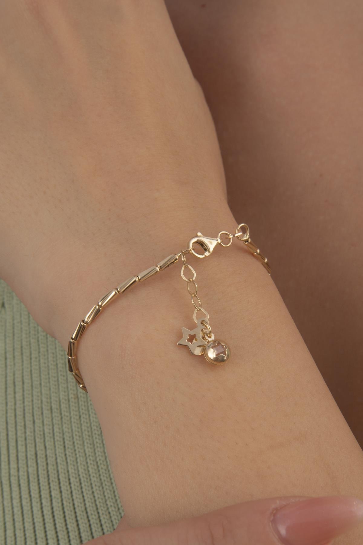 14 Ayar Altın Yıldız Detaylı Roller Bileklik