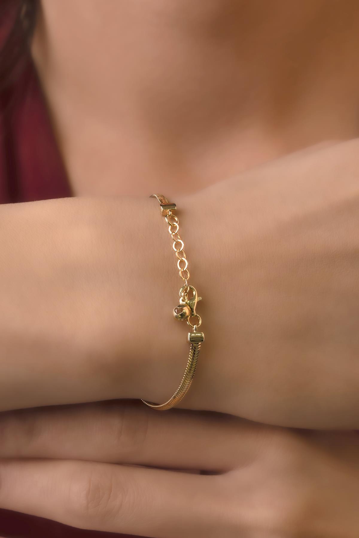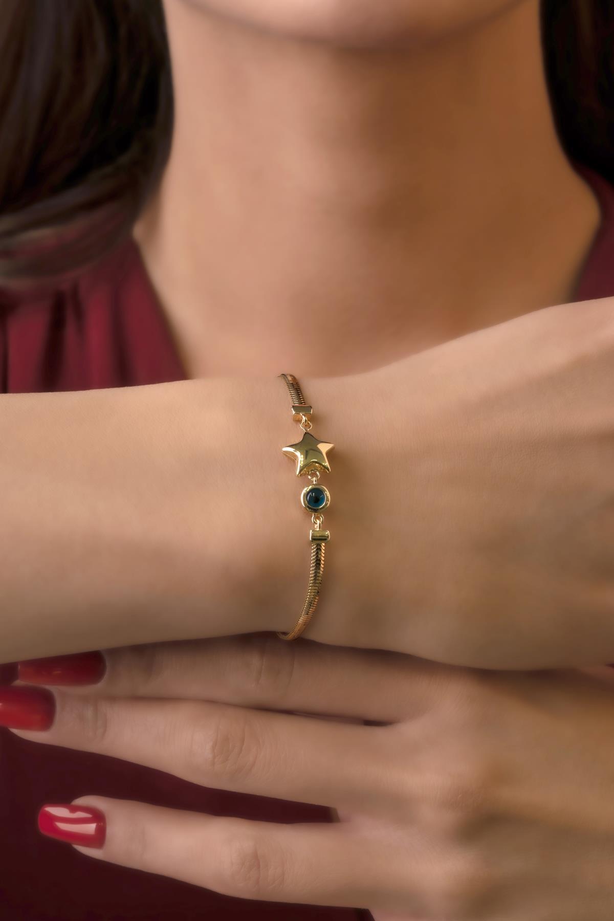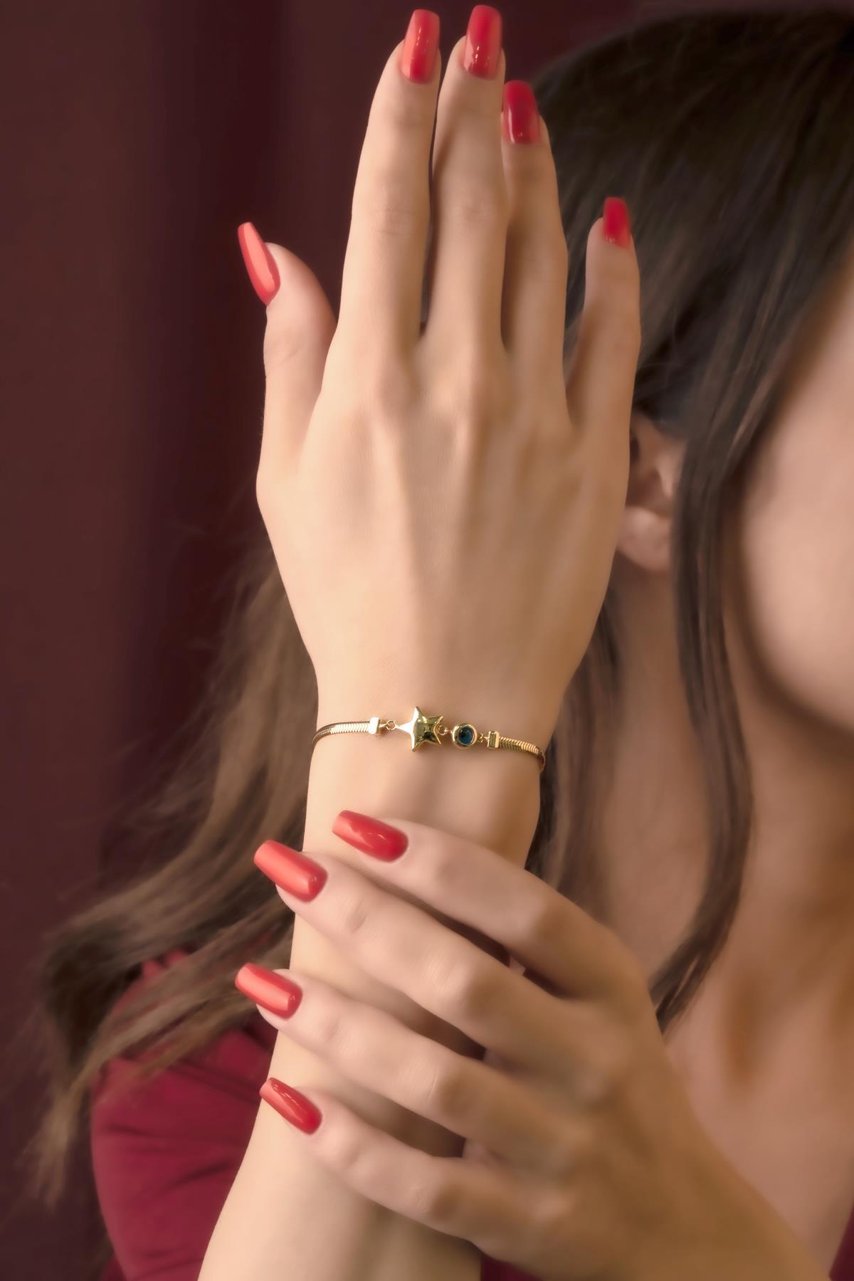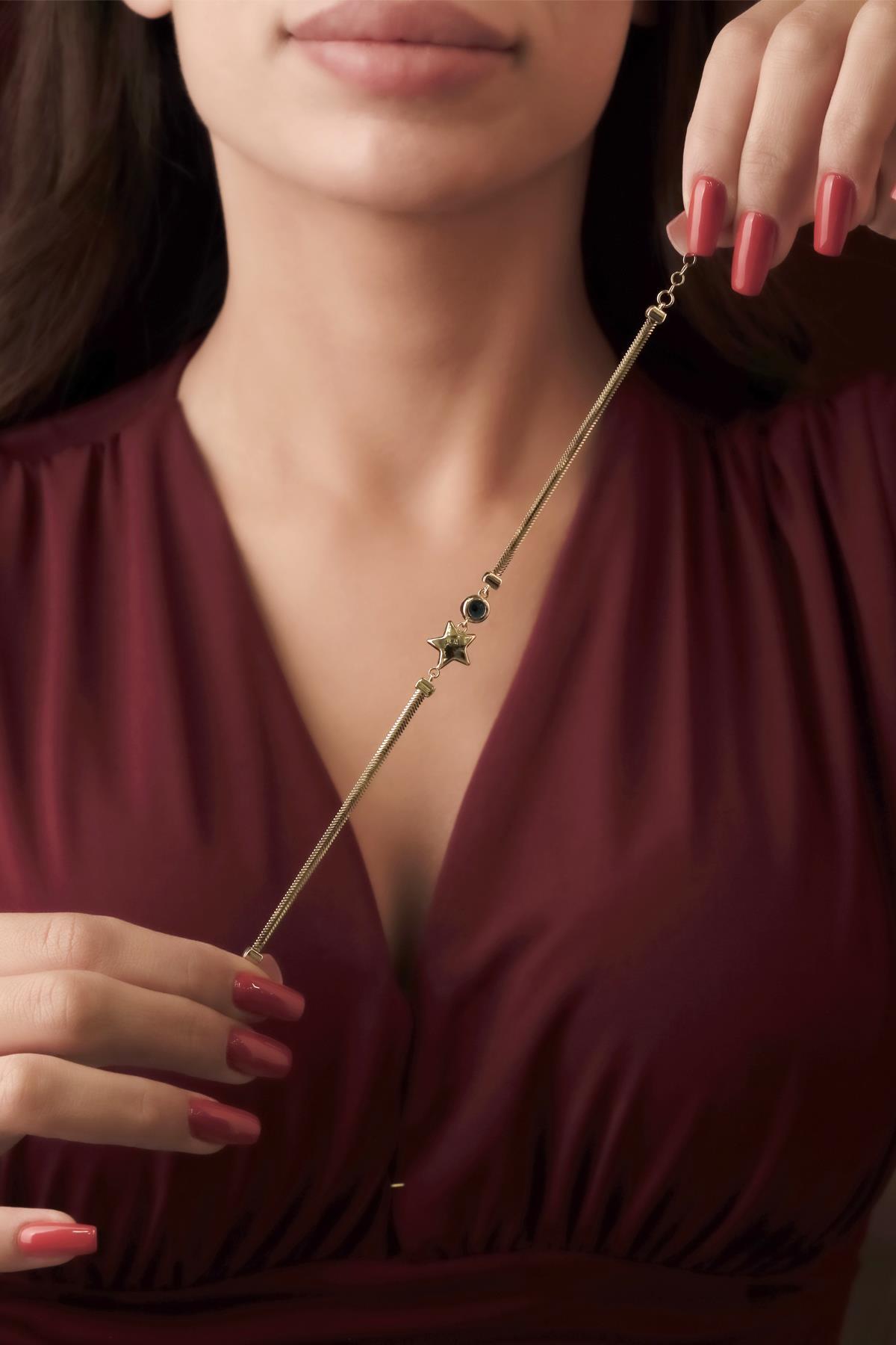 14 Ayar Altın Yıldız ve Göz Detaylı İtalyan Balıksırtı Bileklik