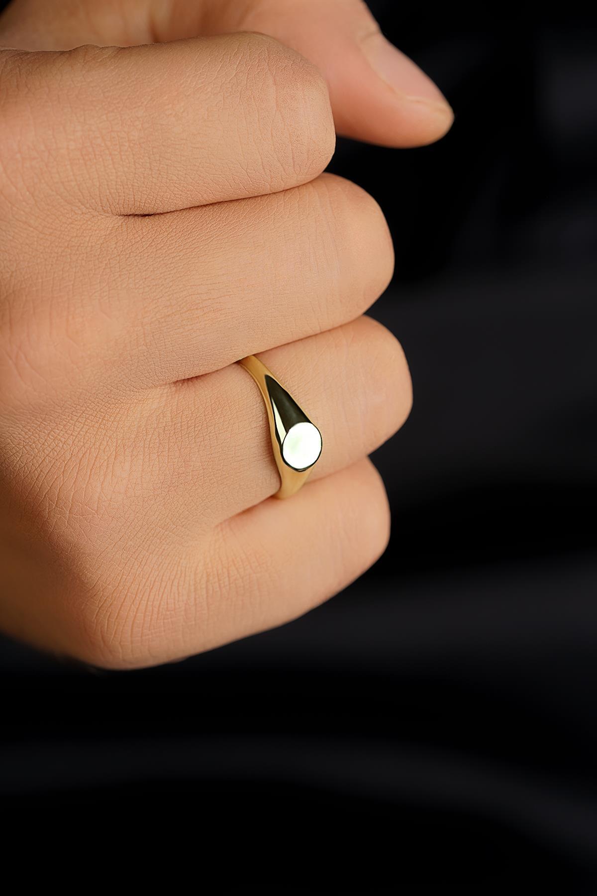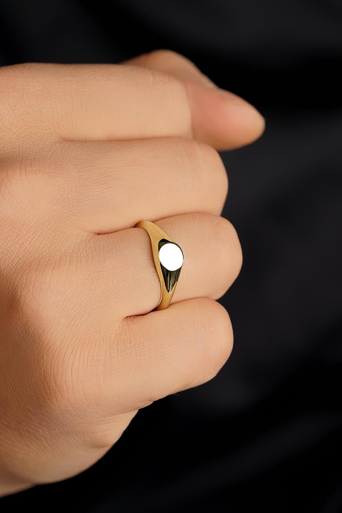 14 Ayar Altın Yuvarlak Plaka Şövalye Erkek Yüzük