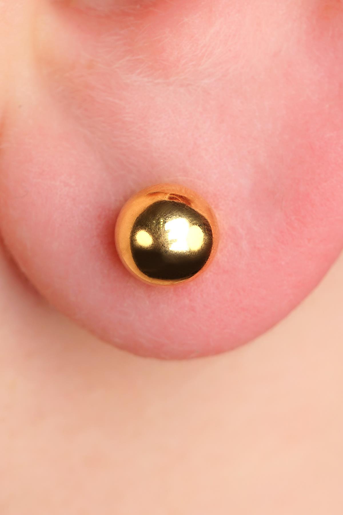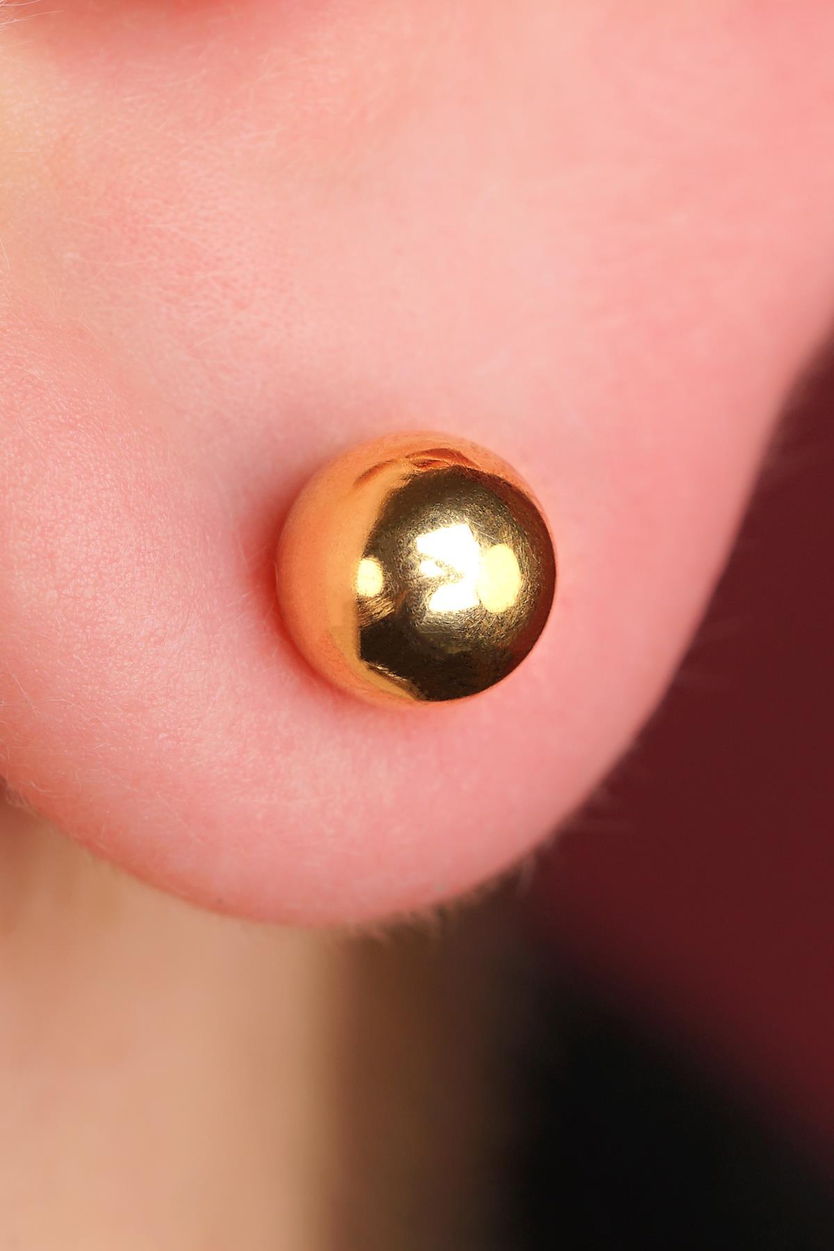 14 Ayar Altın Mini Yuvarlak Top Küpe
