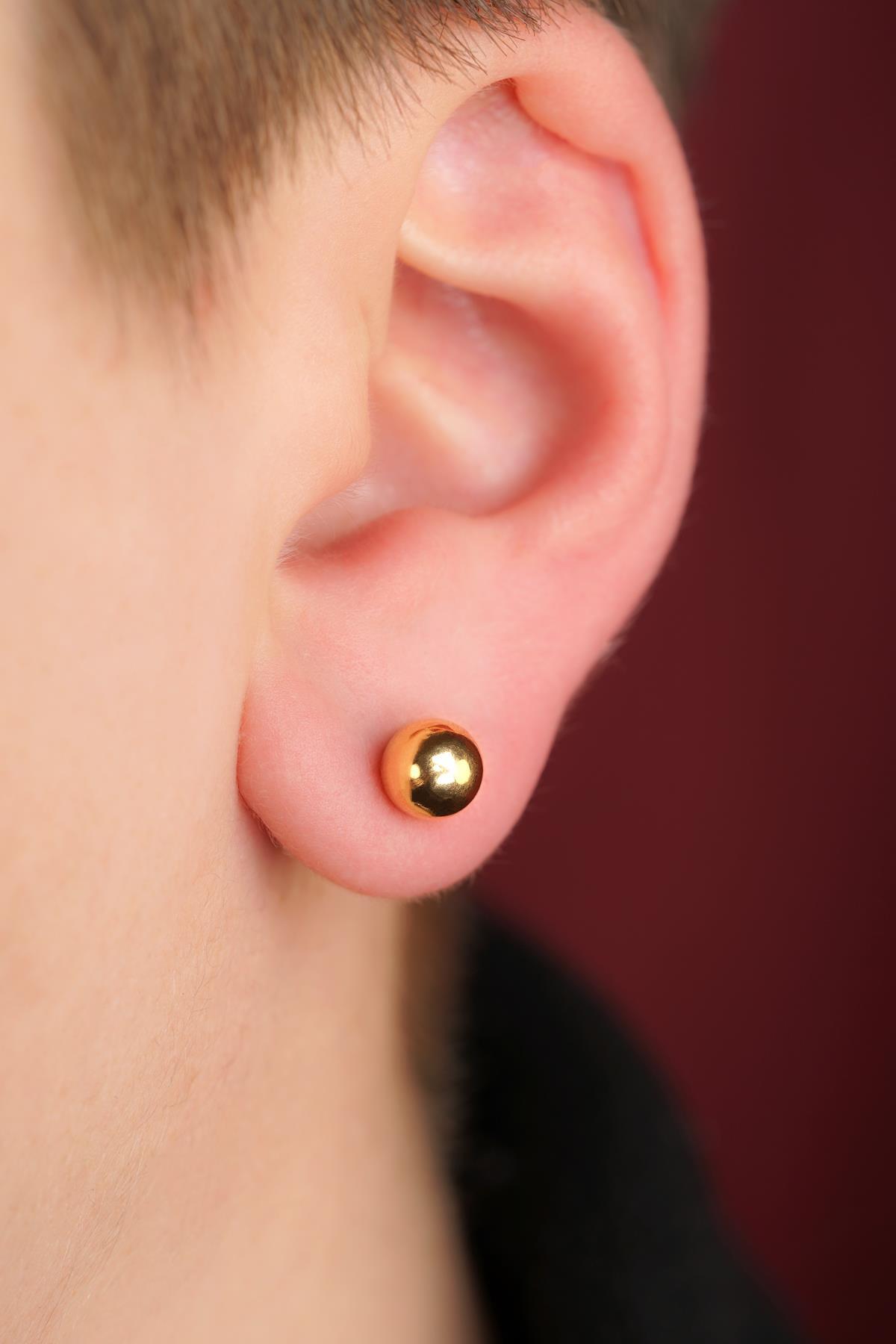 14 Ayar Altın Yuvarlak Top Küpe Erkek