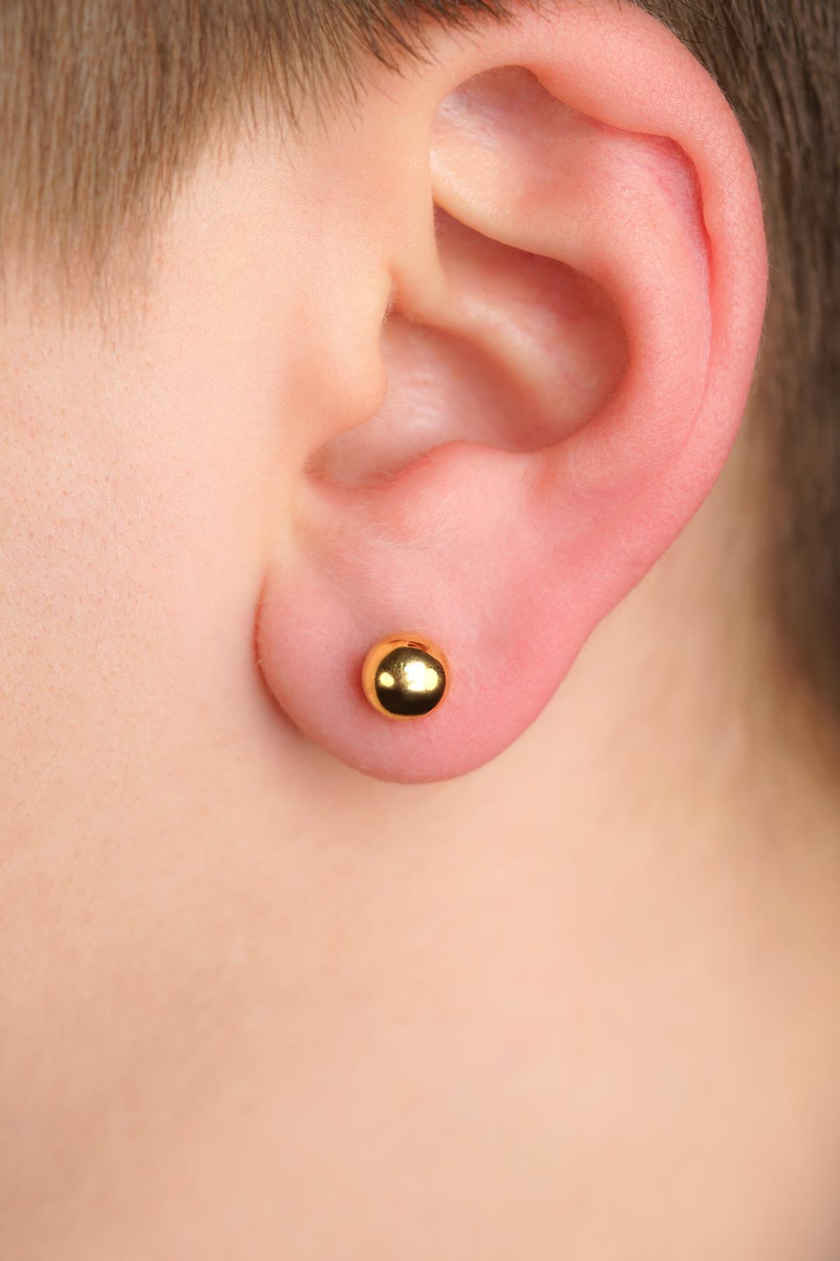 14 Ayar Altın Mini Yuvarlak Top Küpe Erkek