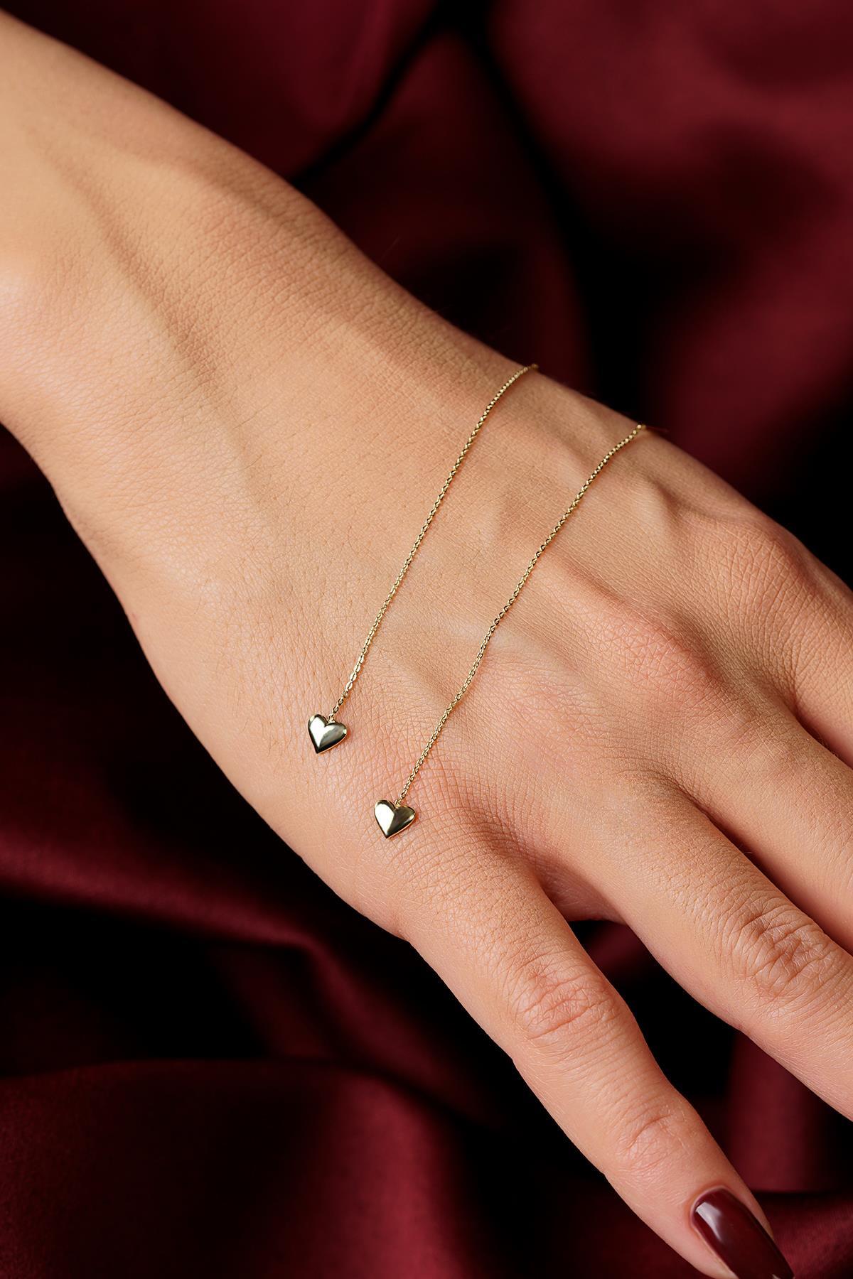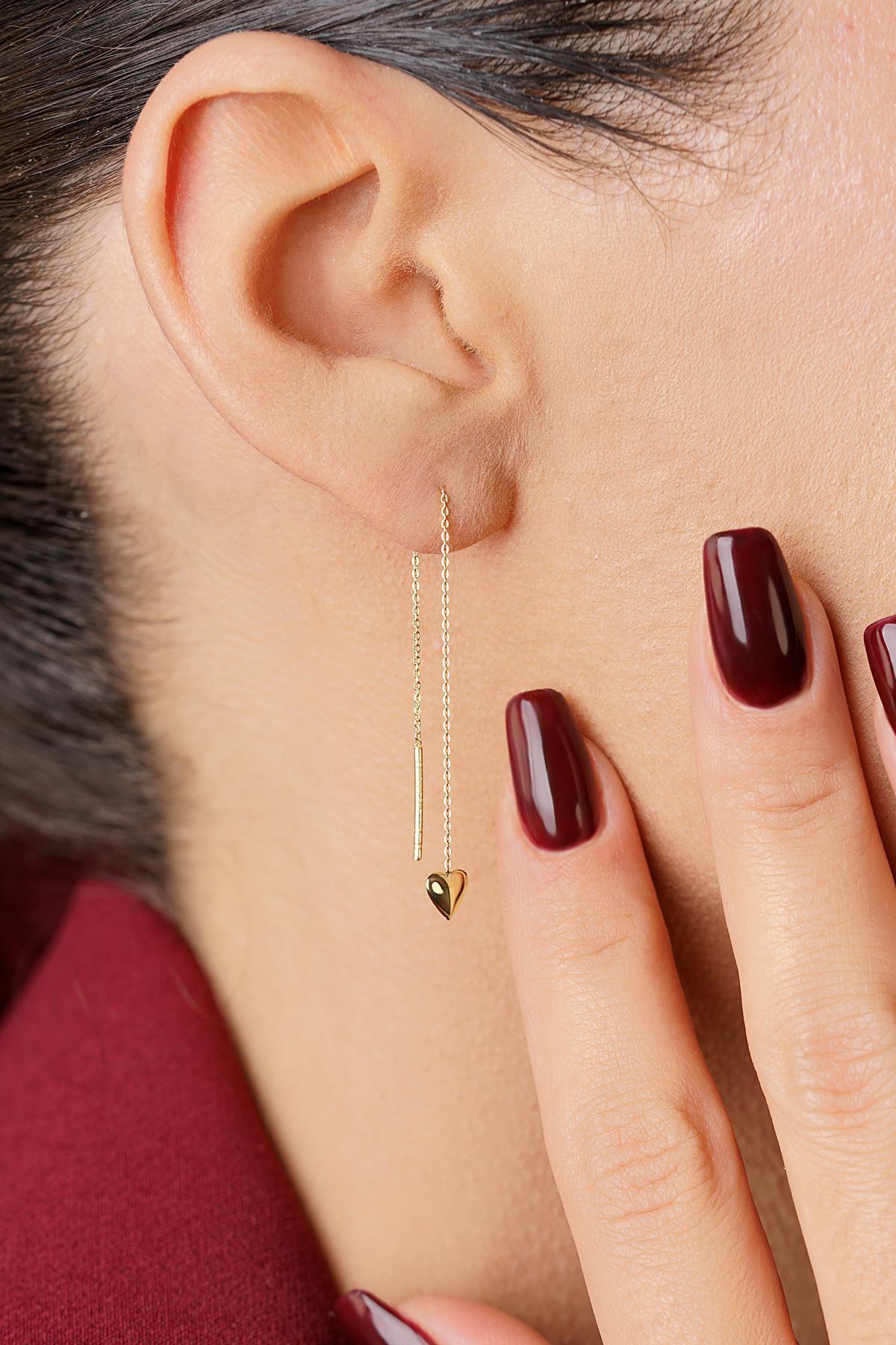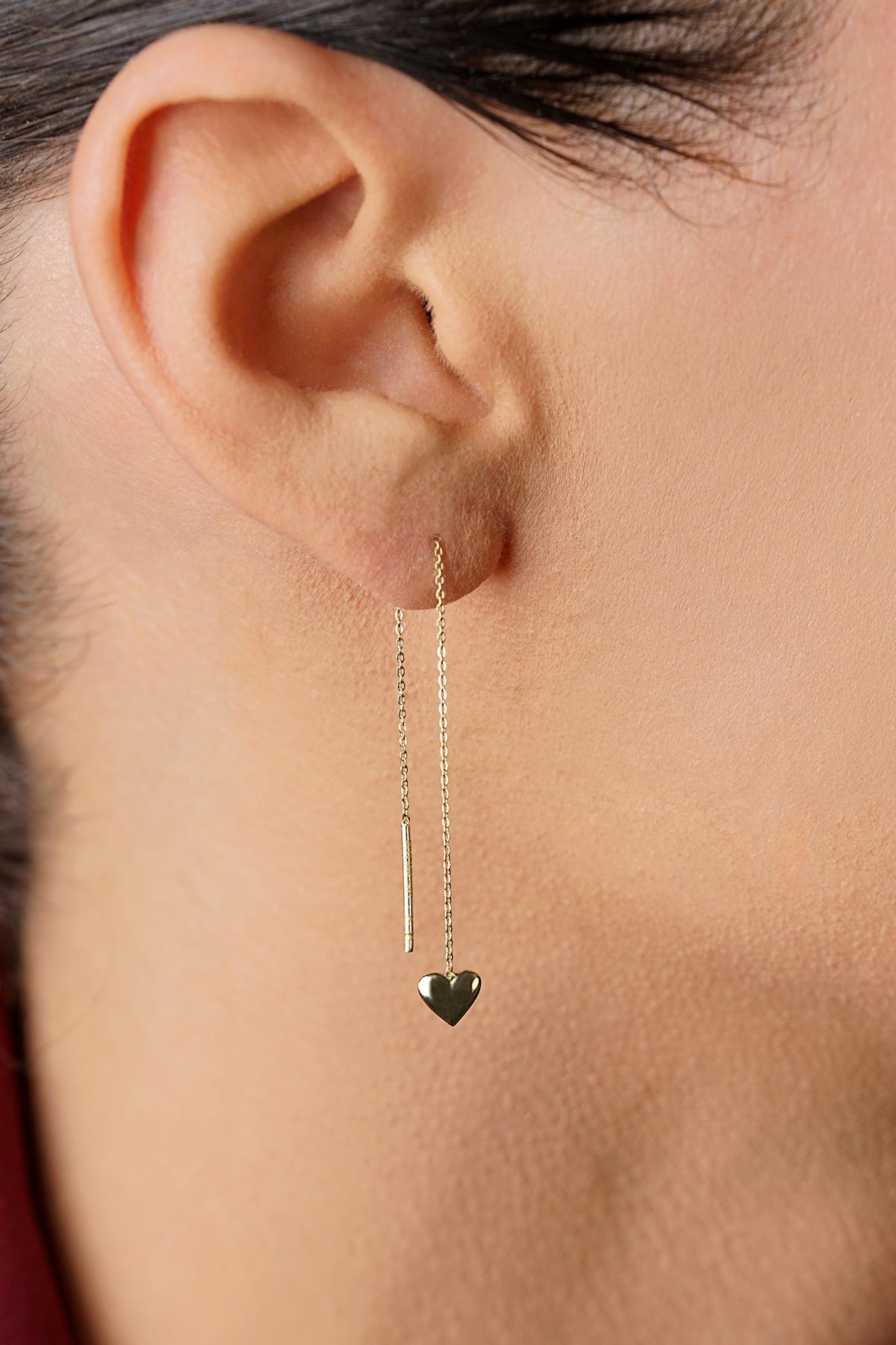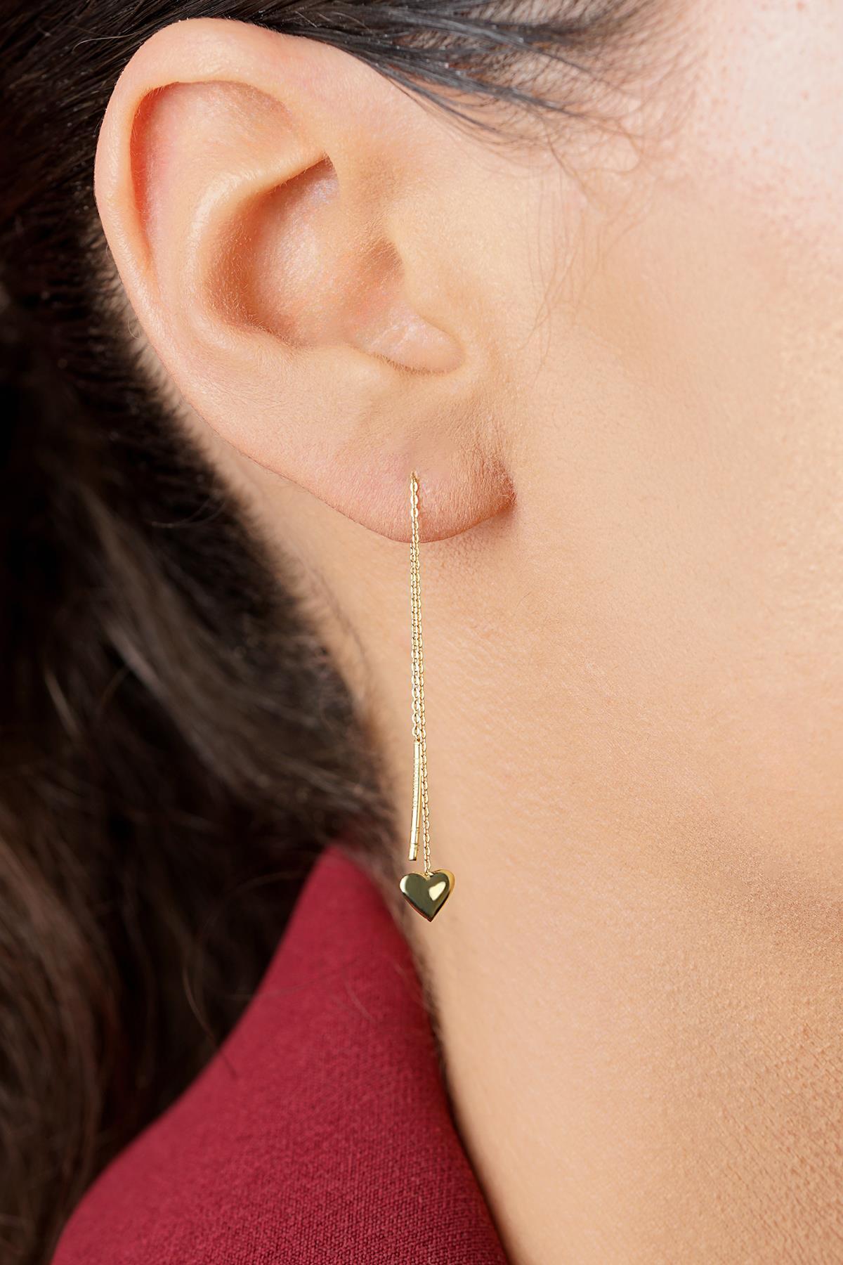 14 Ayar Altın Zincirli Kalpli Küpe (Tekli)