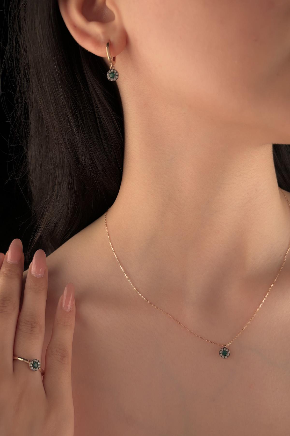 14 Ayar Altın Zümrüt Detaylı Yuvarlak Set