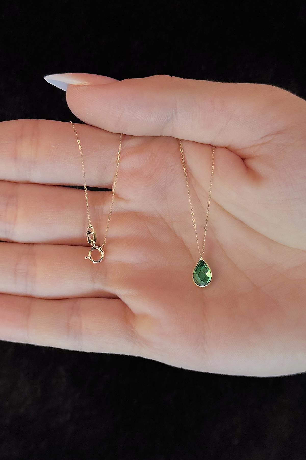 14 Ayar Altın Zümrüt Taşlı Damla Kolye