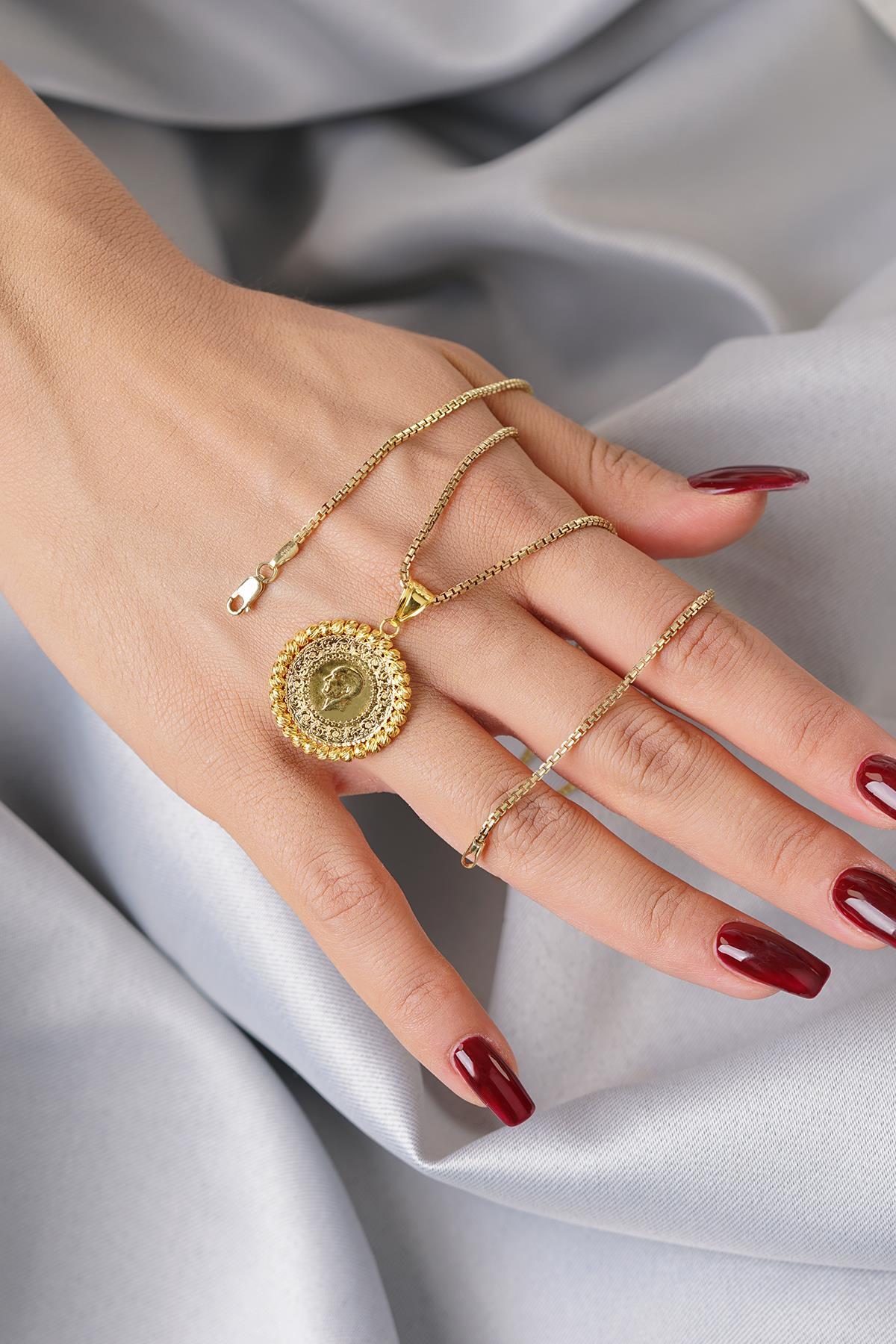 22 Ayar Çeyrek Altın Uç 14 Ayar Altın Desenli Küp Zincir Kolye