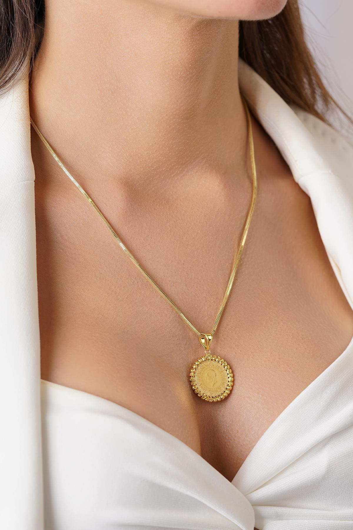 22 Ayar Çeyrek Altın Uç 14 Ayar Altın Pullu Halep Zincir Kolye