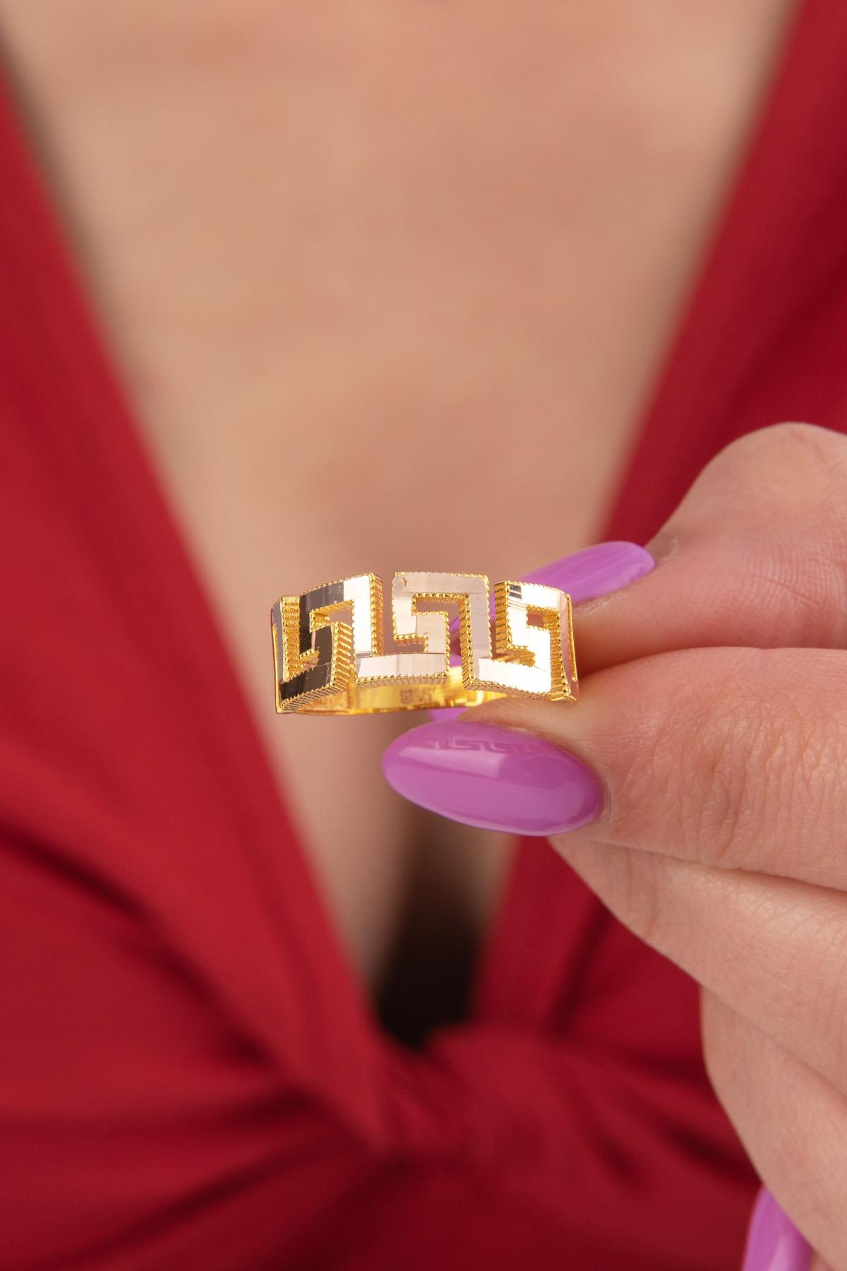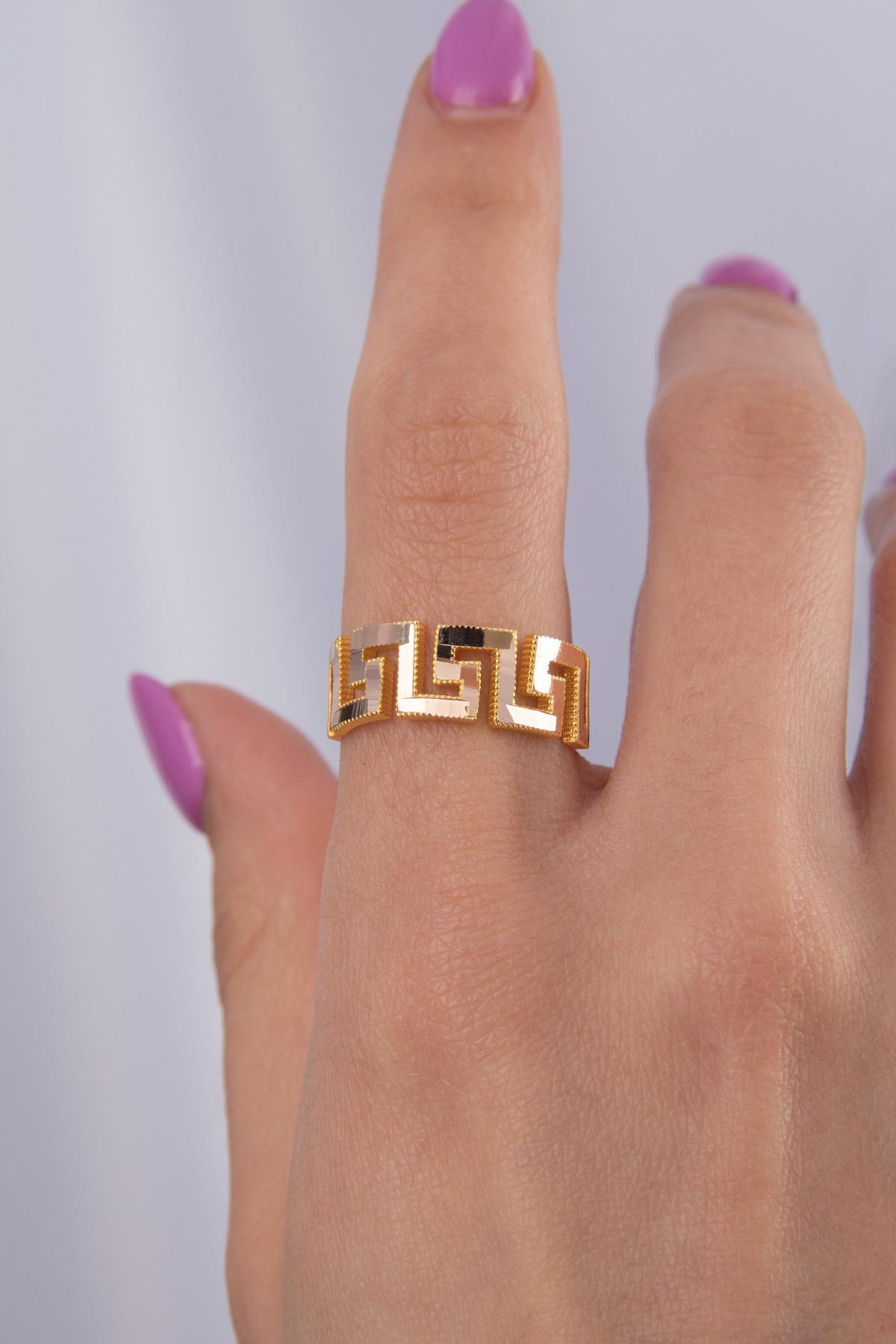 22 Ayar Görünümlü 14 Ayar Altın Greek Desenli Ajda Yüzük