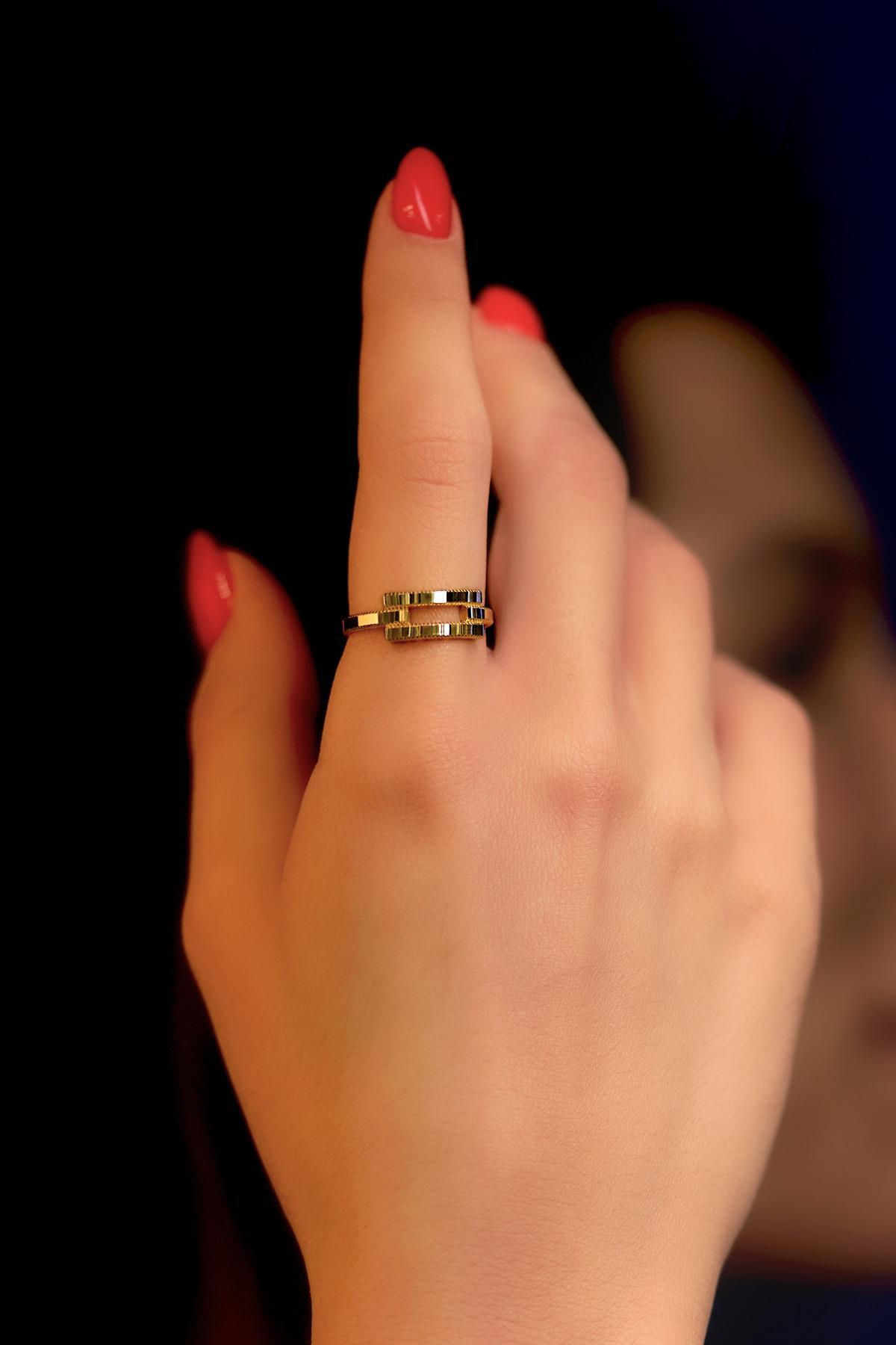 14 Ayar Altın Çift Kare Objeli Yüzük