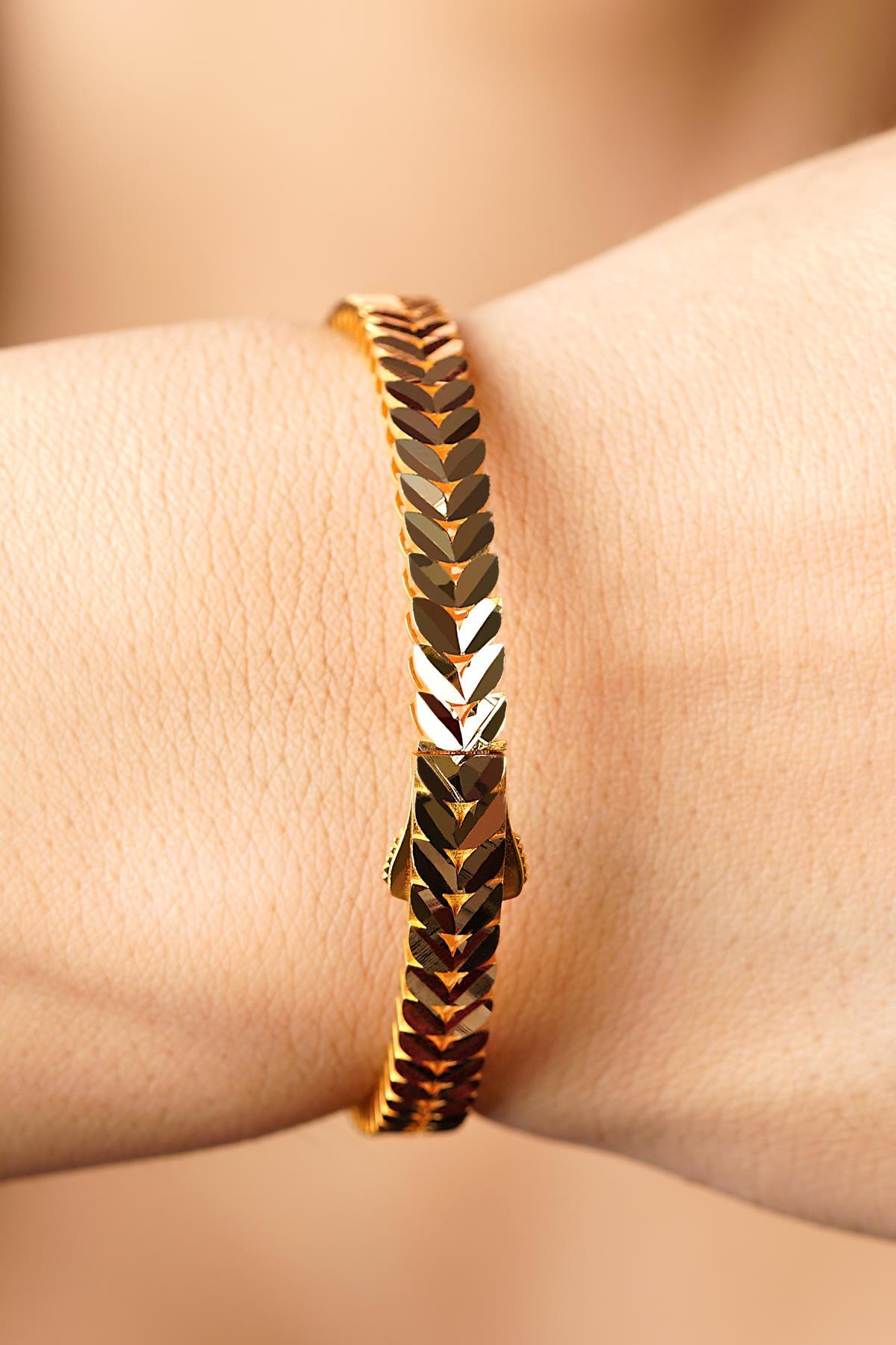 22 Ayar Görünümlü 14 Ayar Altın Yaprak Kelepçe