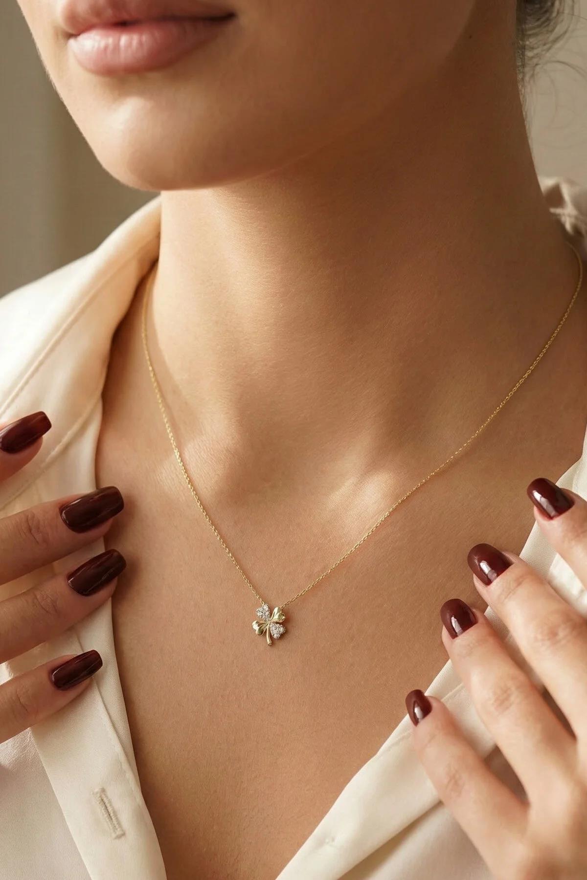 14 Ayar Altın 4 Yapraklı Yonca Kolye