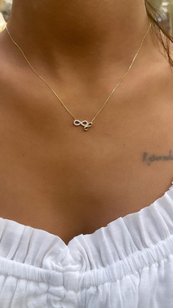 14 Ayar Altın Çift Sonsuzluk Kolyesi